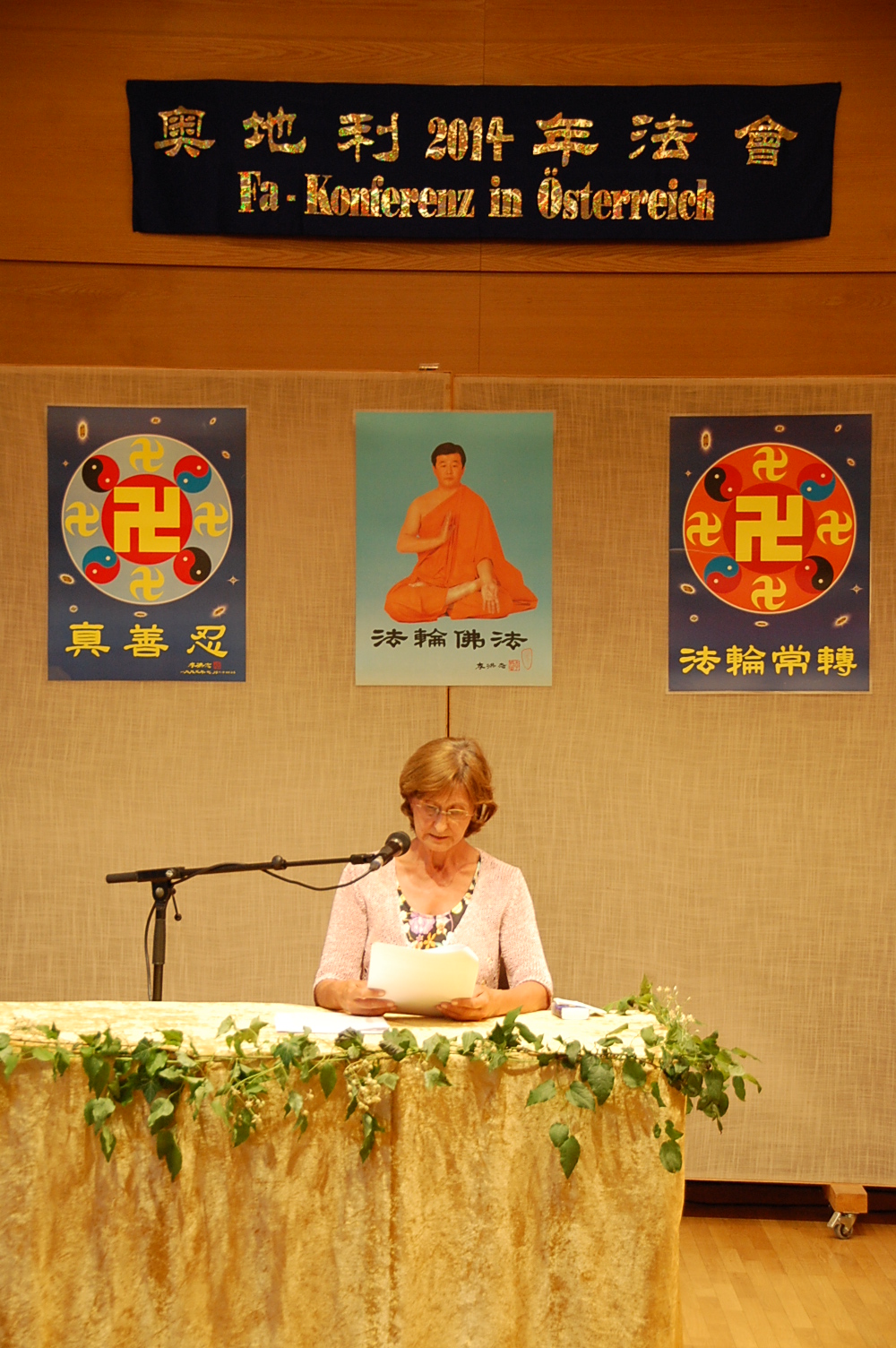 西人学员Birgit交流了师父帮她过病业关的经历。因为很长时间的不精進状态,使其身体忽然回到了修炼前的支气管炎的状态。几天晚上不能呼吸。一天晚上她来到师父法像前,看着师父的法像。忽然法像跟她讲话。Birgit说:“师父说他只能帮我,当我把自己当成真修者。他也很担心我的状态。不然我只是个常人。未来不容易,旧势力会拉我下去。之后师父告诉我发正念的重要性,之前我不重视发正念。师父又教了我一次怎么发正念,这一刻我感受到发正念的威力。”