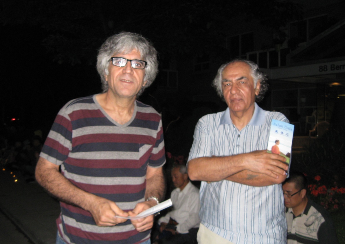 ![]() 图14:在加拿大居住了二十多年的Sam Mimi(左)和朋友看到烛光悼念的场面,他说:“对法轮功的镇压是一个历史性的罪行。” |