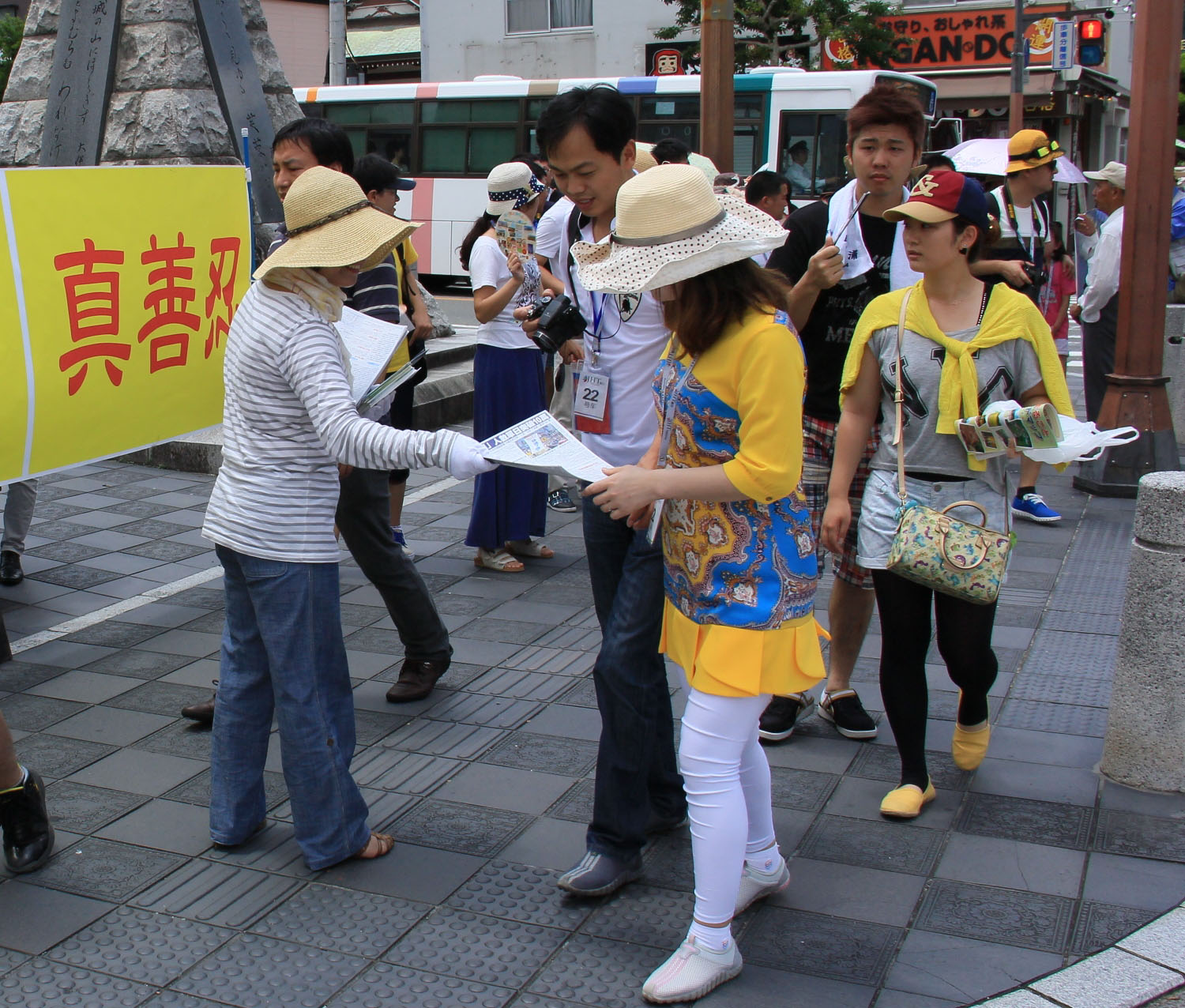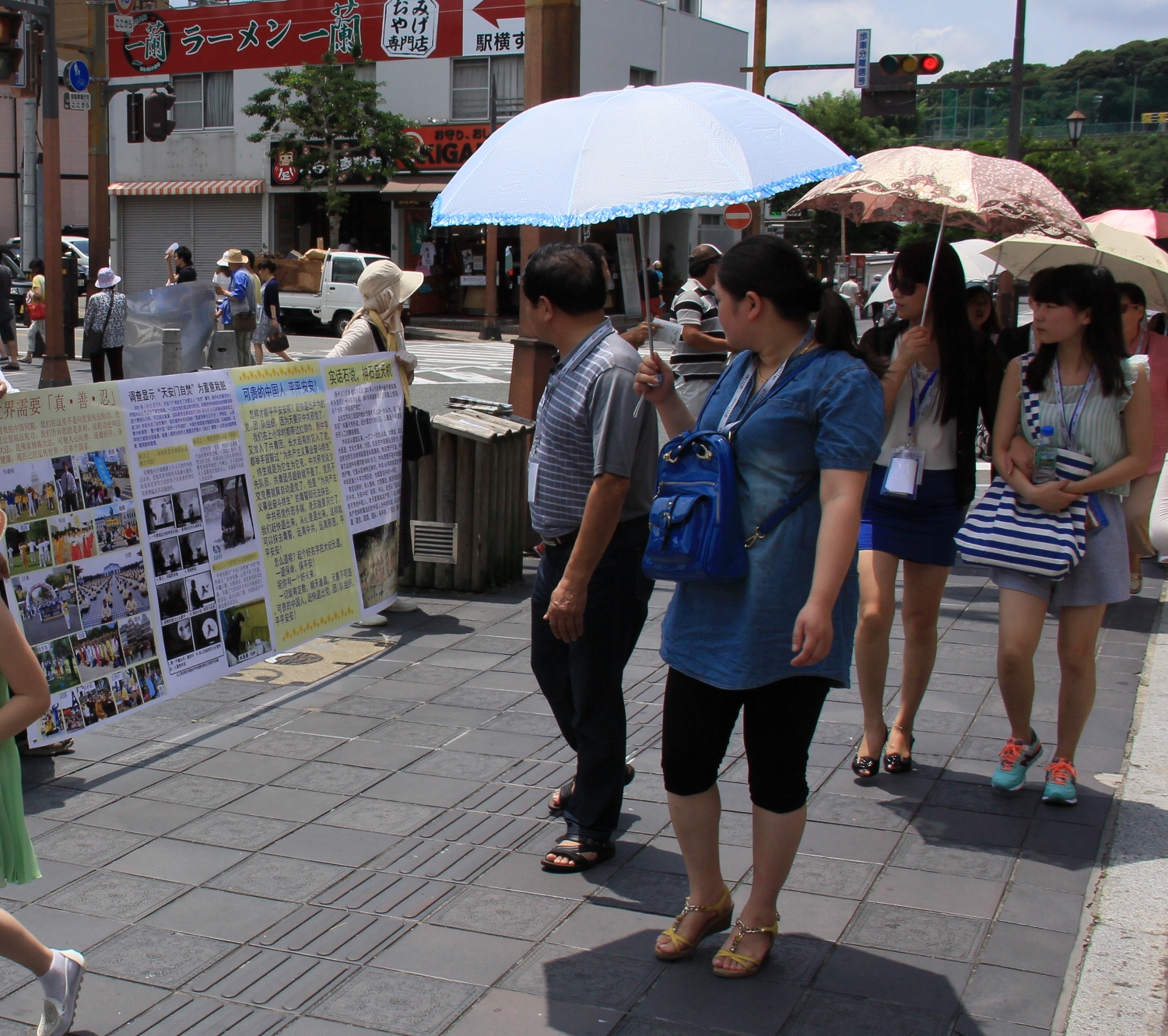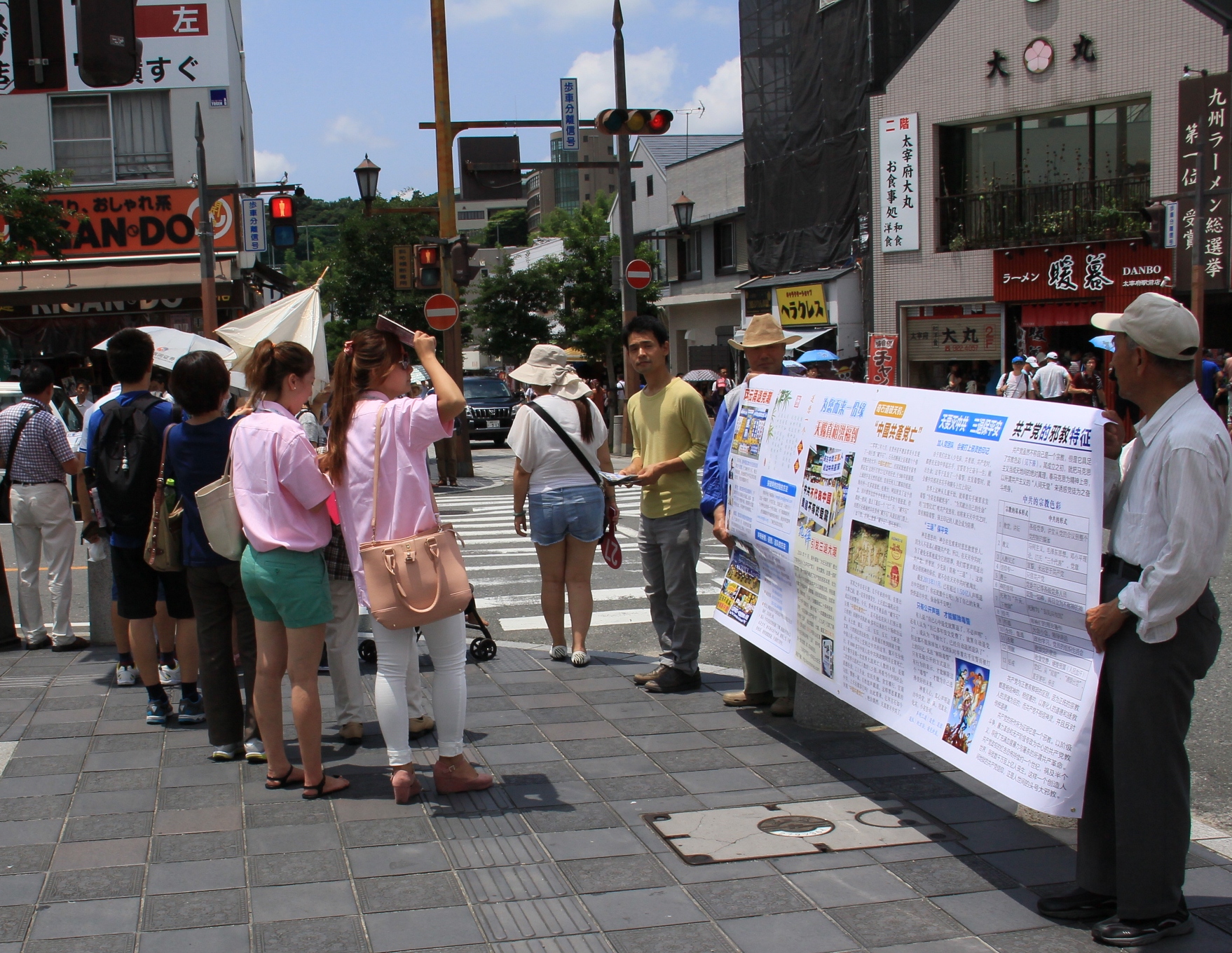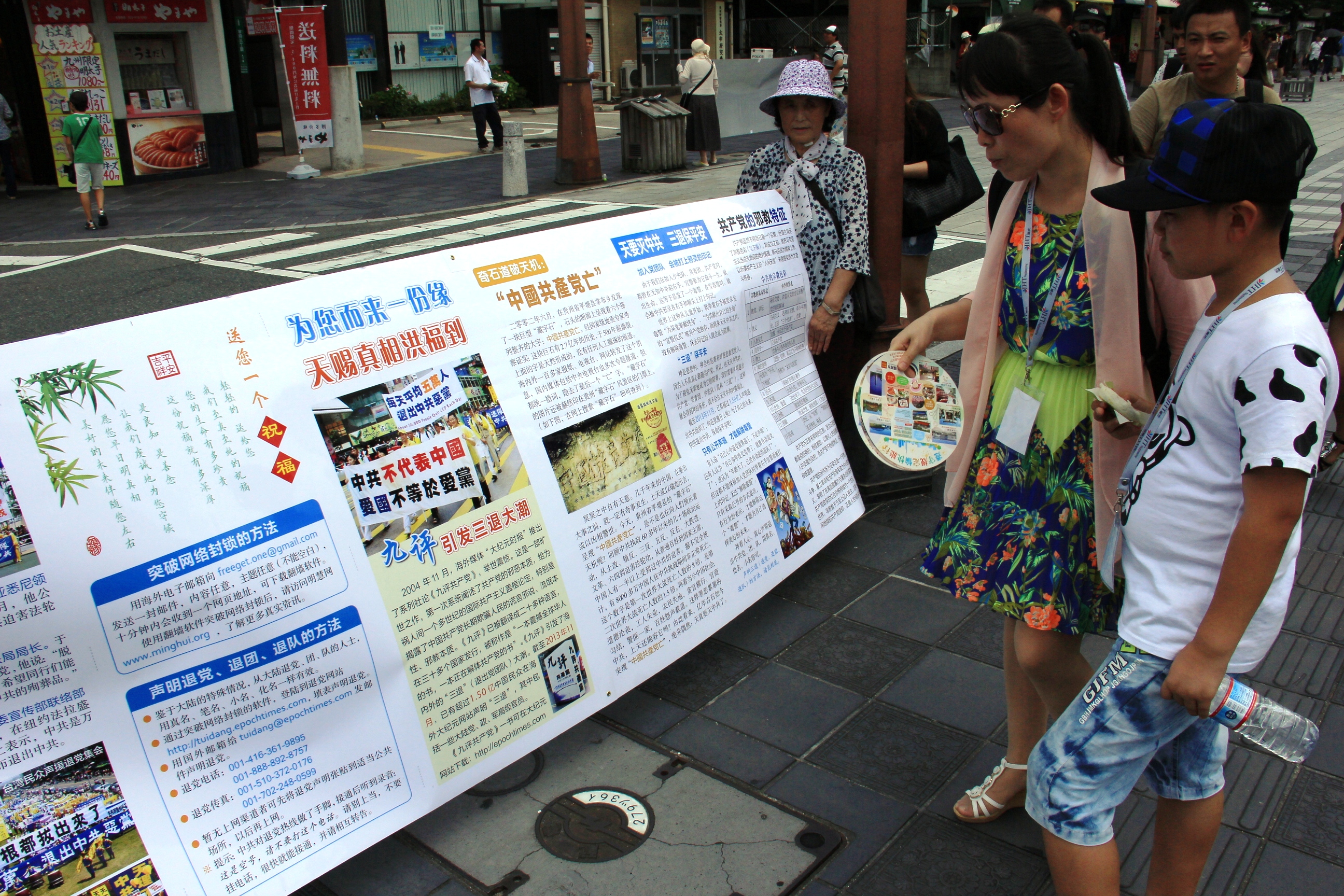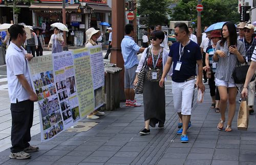 ![]() 图:法轮功学员在日本福冈市太宰府向中国大陆游客传播真相 |
