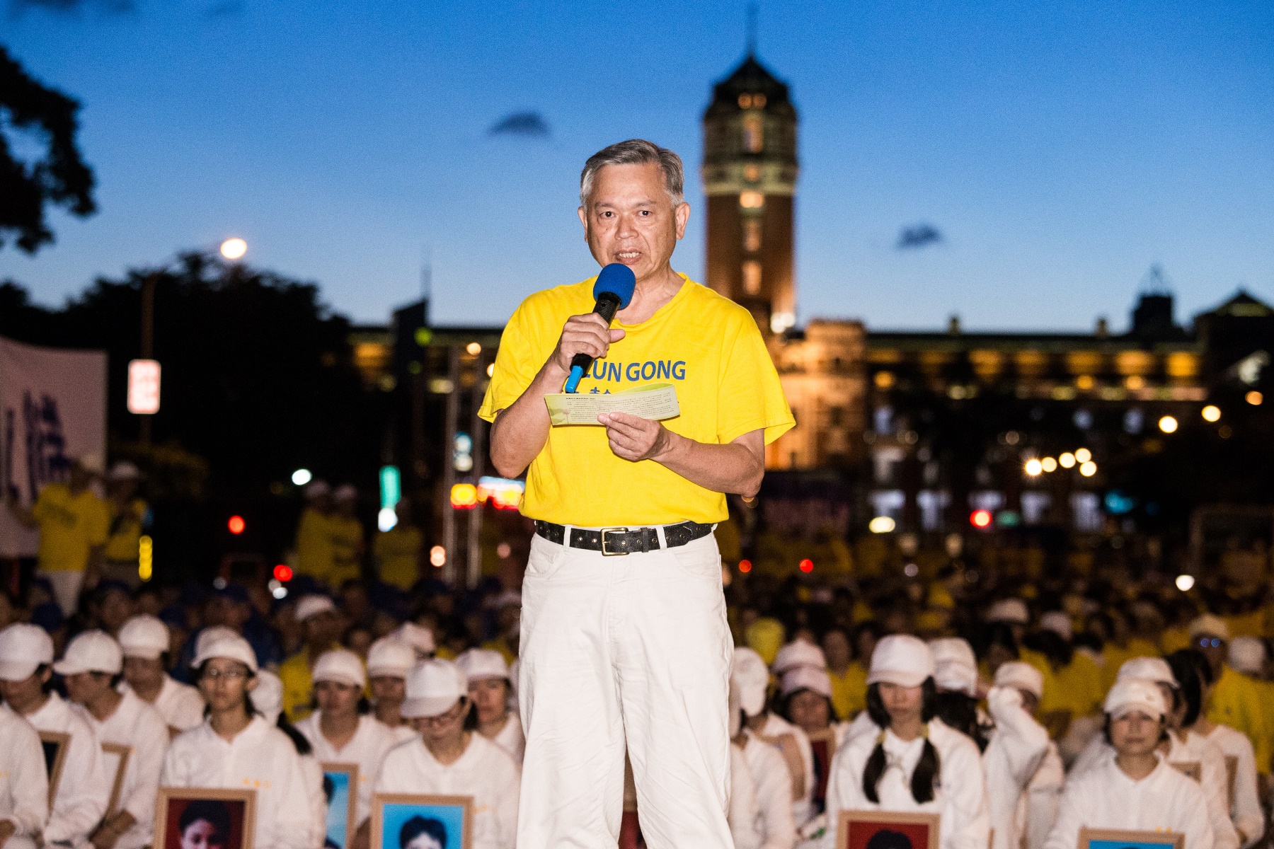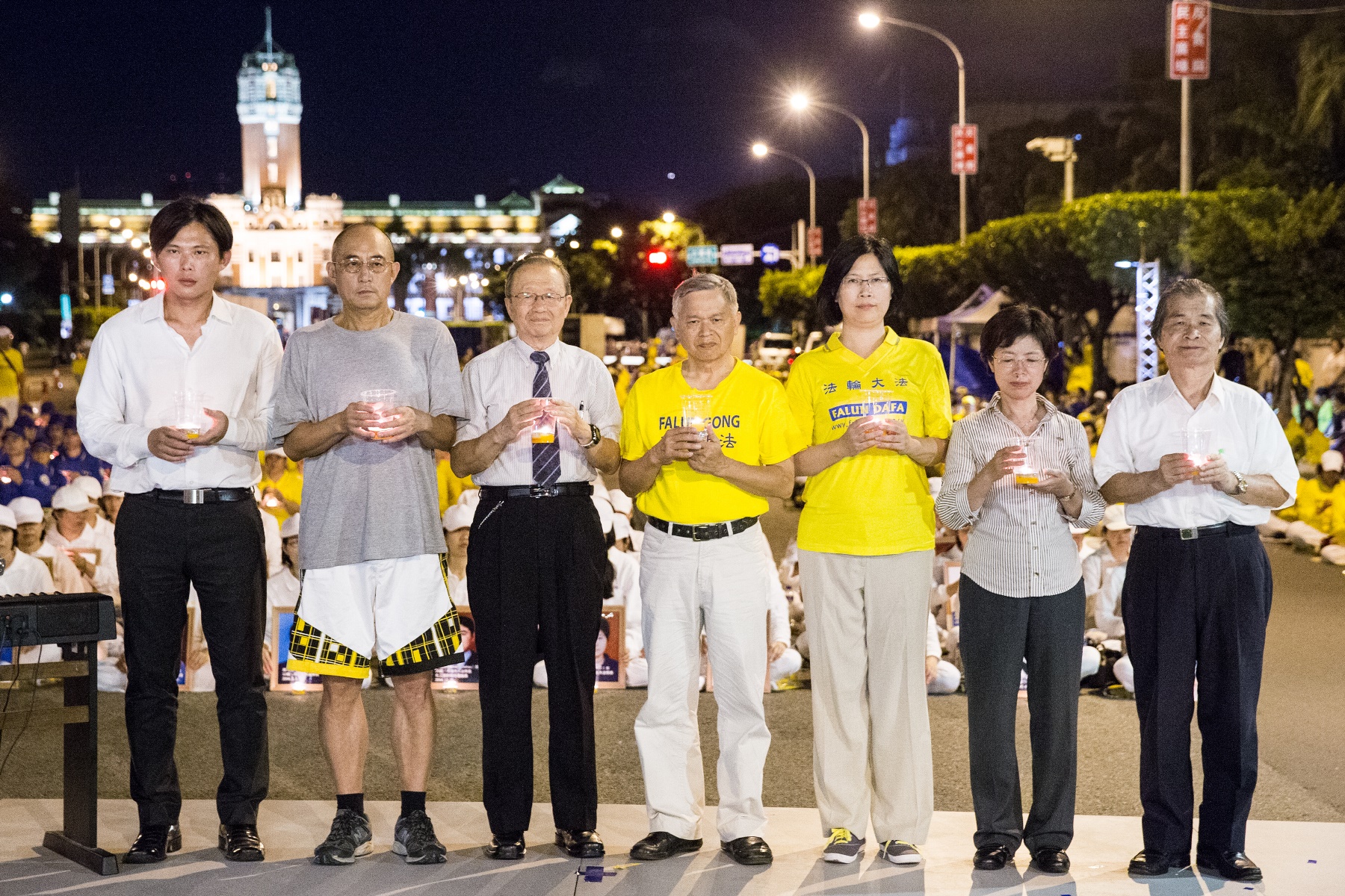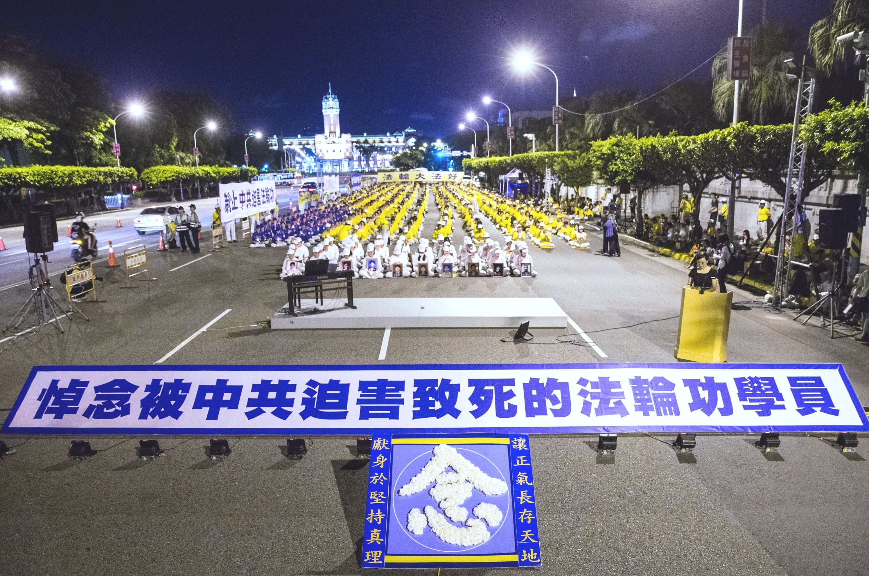![]() 图1:法轮功学员在总统府前的凯达格兰大道举办七•二零烛光悼念记者会。 |
