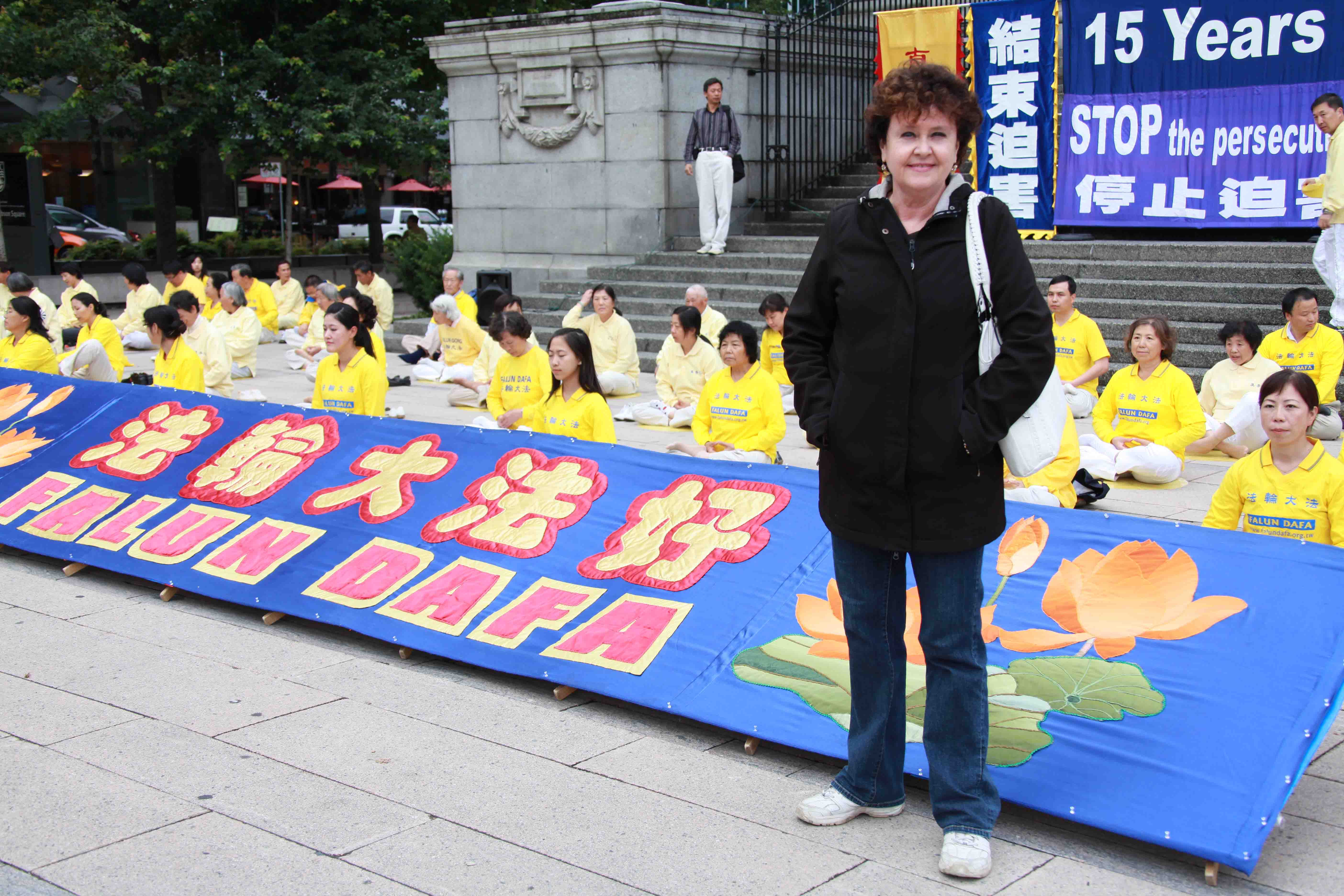 莎伦•布朗(Sharon Brawn)女士是前温哥华市府官员,她表示,我了解法轮功,我知道温哥华的法轮功学员长期坚持在中领馆前的反迫害活动。一个迫害自己民众的政权是不值得信任的。法轮功学员仅仅因为想要获得自由炼功的机会,而遭受如此残酷的迫害,是没有任何道理的。我仔细地阅读了呼吁制止中共迫害法轮功的明信片上的内容,我签名支持法轮功反迫害。加拿大政府应该采取行动制止中共迫害法轮功。