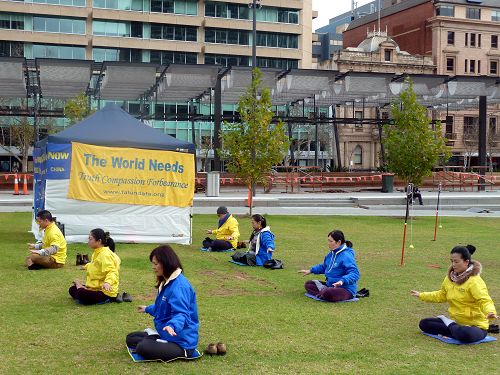 ![]() 图1-2:南澳法轮功学员在阿德莱德市维多利亚广场传播法轮功的真相。 |