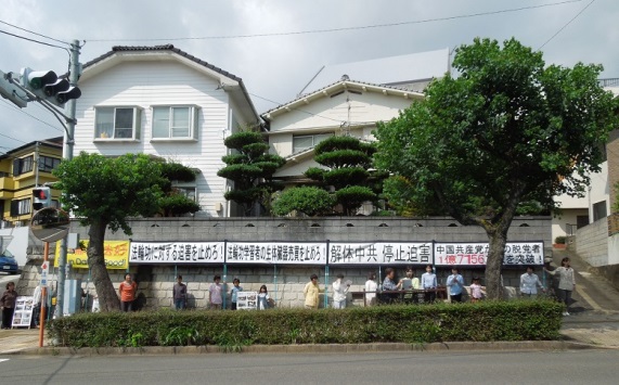 位于九州地区的福冈和长崎中领馆相隔一百五十多公里,为了同一天开展活动,学员们安排好时间上午十点在福冈,下午两点在长崎,先后在两地中领馆前打出“法轮大法好”,“解体中共,停止迫害”,“立即停止对法轮功的迫害”,“立即停止对法轮功学员的活摘器官”,“退!党!人数突破一亿六千八百万”等横幅和法轮功受中共迫害的真相展板,并宣读了反迫害声明文,呼吁制止迫害。
