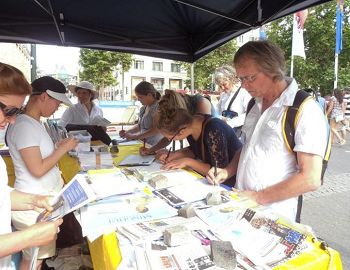 ![]() 图3:杜赛尔多夫市海涅广场上,人们纷纷签名声援法轮功反迫害 |