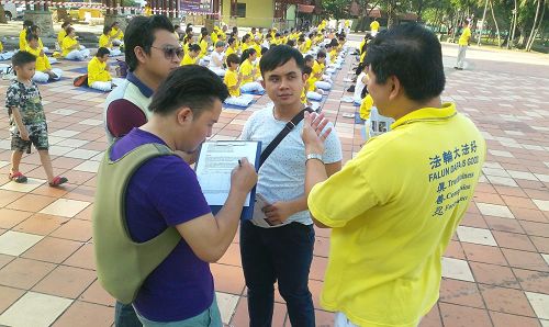 ![]() 在柔佛州新山Setia Indah公园,民众了解真相,签名反迫害 |