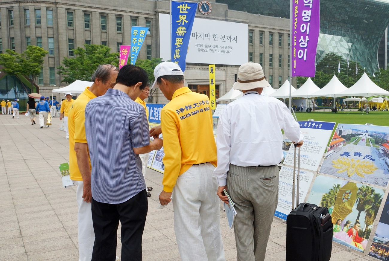 来自中国大连的游客刘小姐说,“今天早晨在首尔市政府广场看到法轮功学员炼功的场面,感动得差点落泪。当时的场面很安静、很祥和,大家都很友善,这样的场面在中国看不到。”