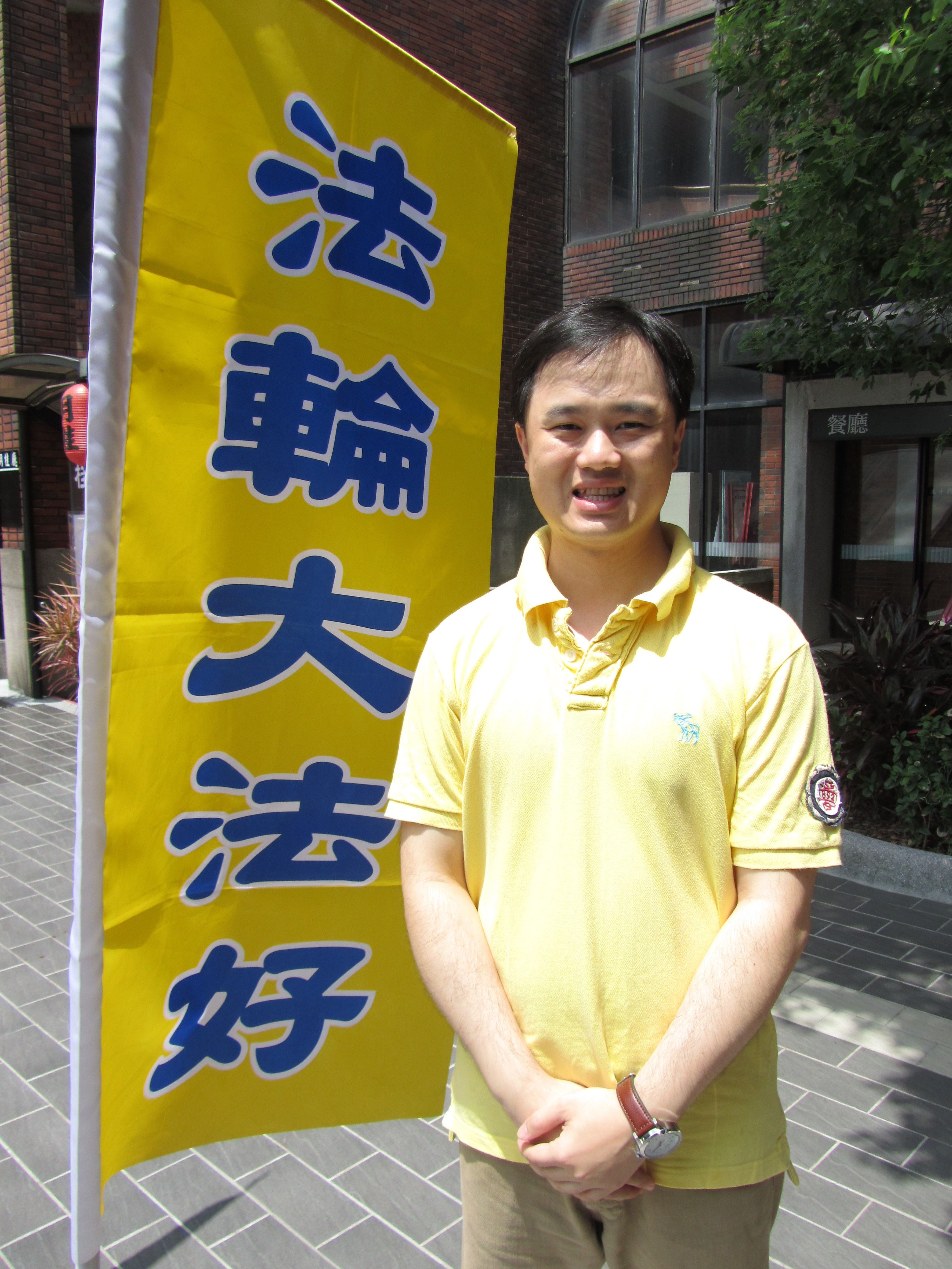 年轻的家祥在大学时期,每天看到進出校园公车的横幅广告,跟着念出“法轮大法好”,一段时间后感到好奇:“只是这几个字,却没说法轮大法是什么?为什么好?”于是上网搜寻,進而自学《转法轮》十遍后,发现还有一些不明白的地方,走出来和其他学员集体学法后才知:除了《转法轮》之外,还有《精進要旨》和各地讲法等大法书籍要学。