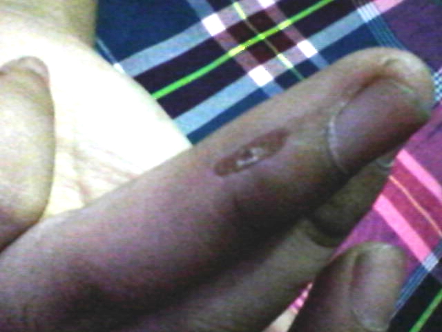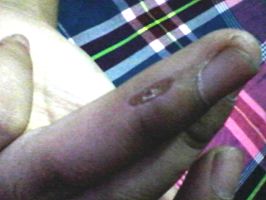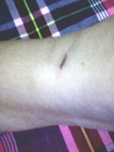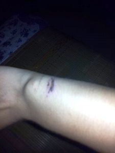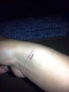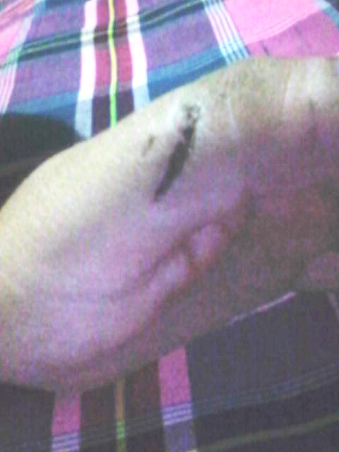 此过程中,两姐妹都不同程度的受伤(附照片),妹妹手被划了一个很深的口子,不停的滴血。