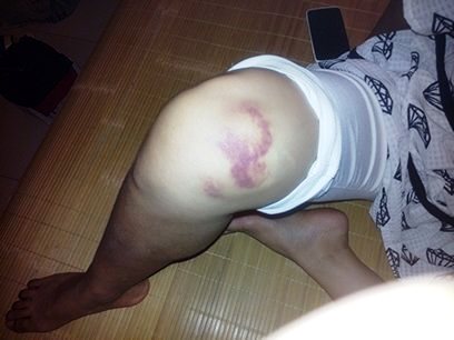 袁光武的亲友看到这种情况,以要出去吃饭为由准备离开。值班室的警察都过来阻挡,并推阻他们。不一会,从派出所楼上又下来了大概十几名警察当帮手。袁光武的儿子在拉扯当中,衣服被拽掉,只好离开了派出所。但两个女儿被恶警拦下。几名恶警把姐姐推倒在地,一人用脚踩着她的脖子,一人用脚踩着她的腰,还有一人踩着她的腿并有另一人按住双脚。而此时双手紧抓着卷闸门的妹妹,也被恶警暴力拽回到房里,并给两个人都戴上了手铐。