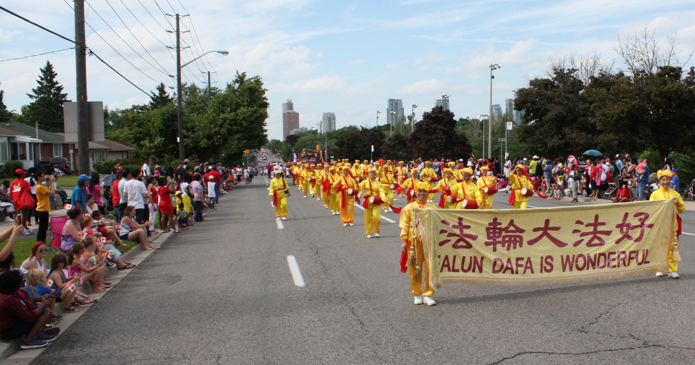 ![]() 二零一四年七月一日加拿大国庆节,多伦多天国乐团参加多伦多士嘉堡市(Scarborough)的国庆游行受欢迎。 |