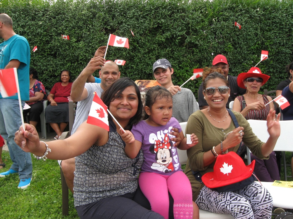 当乐团演奏着“永远的枫叶”时,观众Cathy挥着加拿大国旗唱着这首歌,她说:“我跟着他们的演奏一起唱,每年都欢迎他们的到来,祝他们国庆节快乐!明年再见!”
