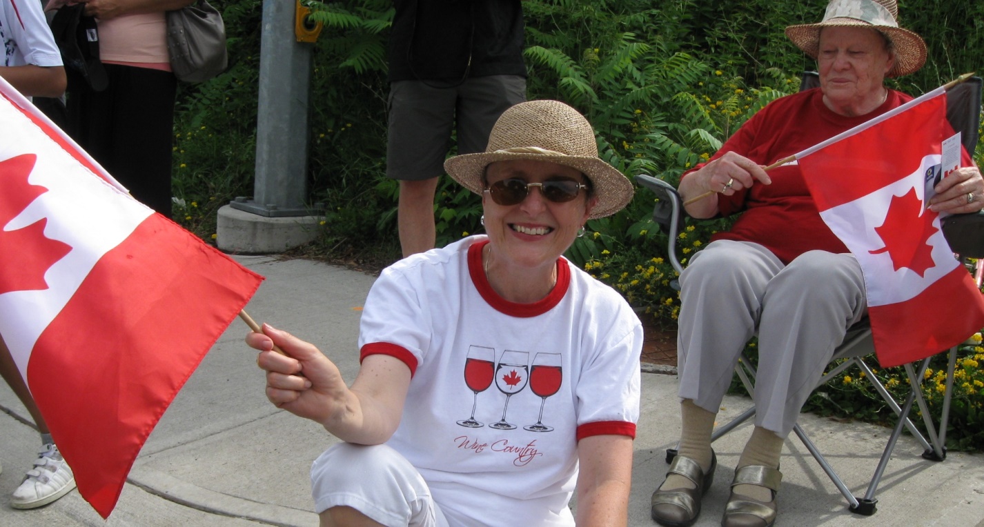 ![]() 当乐团演奏着“永远的枫叶”时,观众Cathy挥着加拿大国旗唱着这首歌。 |