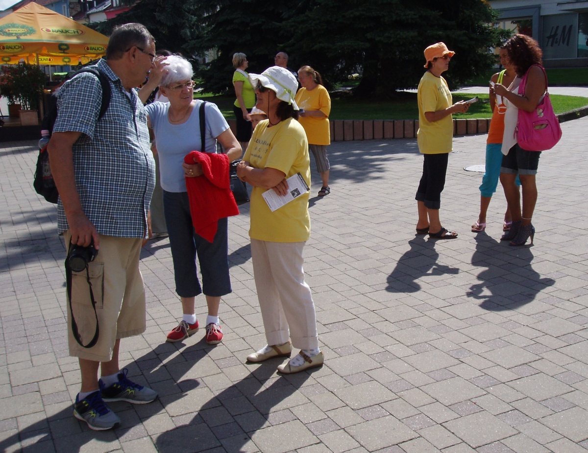 在中部城市鲁容贝罗克(Ruzomberok)和普勒索夫(Presov)的中心,除了展示五套功法,法轮功学员们还教民众折叠纸莲花,很受欢迎。在鲁容贝罗克,很多人都表示他们还记得自己国家历史上的共产主义政权时期,很容易理解今天中共对法轮功的迫害真相,人们纷纷在反对迫害的请愿书上签名。