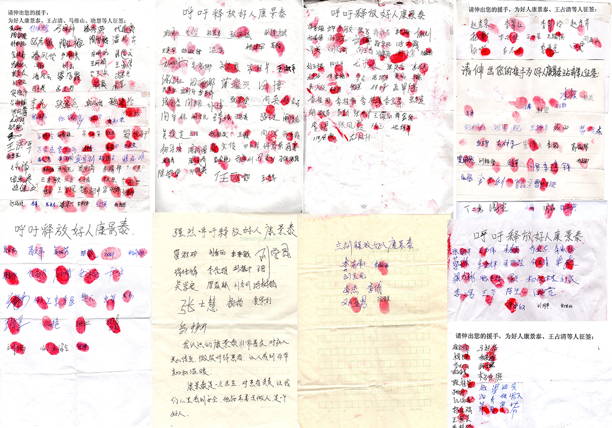 在新集镇的一个村子,当征签者问乡亲们知不知道中医院的康大夫时,一个四十岁左右的妇女说:“知道,康大夫是好人。”听说康景泰被绑架、请求签名呼吁释放的事情后,她说:“救这样的人我们还不签?救好人有啥可怕的!我不怕,我签。”周围的民众一看,也纷纷签名、按手印,表示声援。