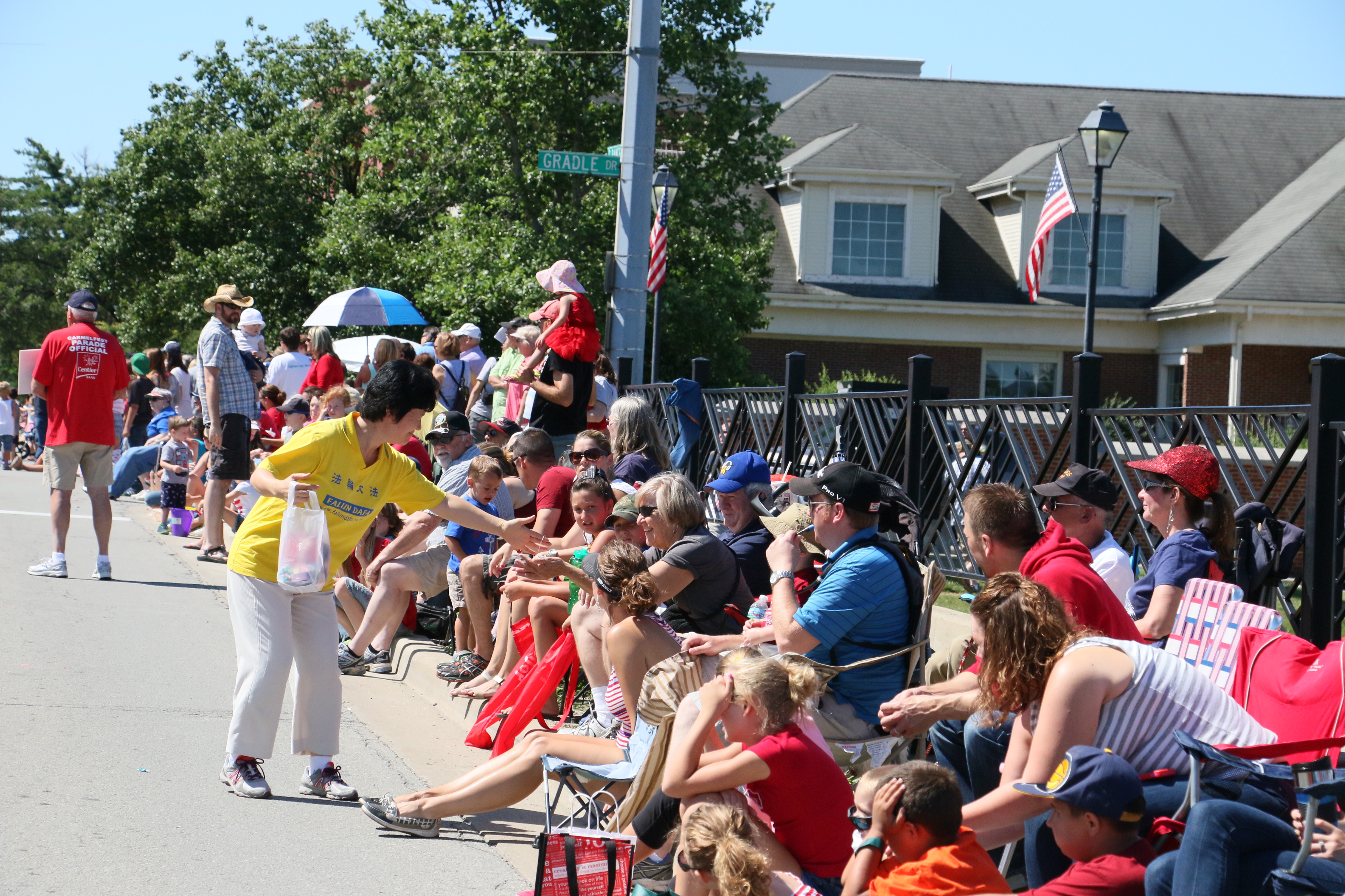 有的观众热情的向法轮功游行队伍招手致意,有的观众模仿起学员的炼功动作,“太棒了。”“法轮大法好!”“这是今天最好的游行队伍。”有许多华裔家庭的观众也热情的向法轮功学员微笑打招呼。