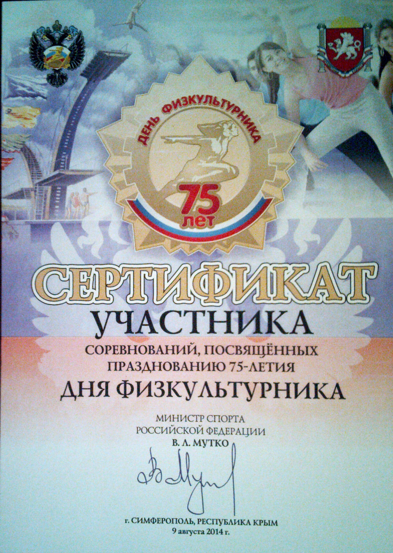 ![]() 在活动结束后,主办方给在场的法轮功学员颁发了附有俄联邦体育部部长签名的荣誉证书 |