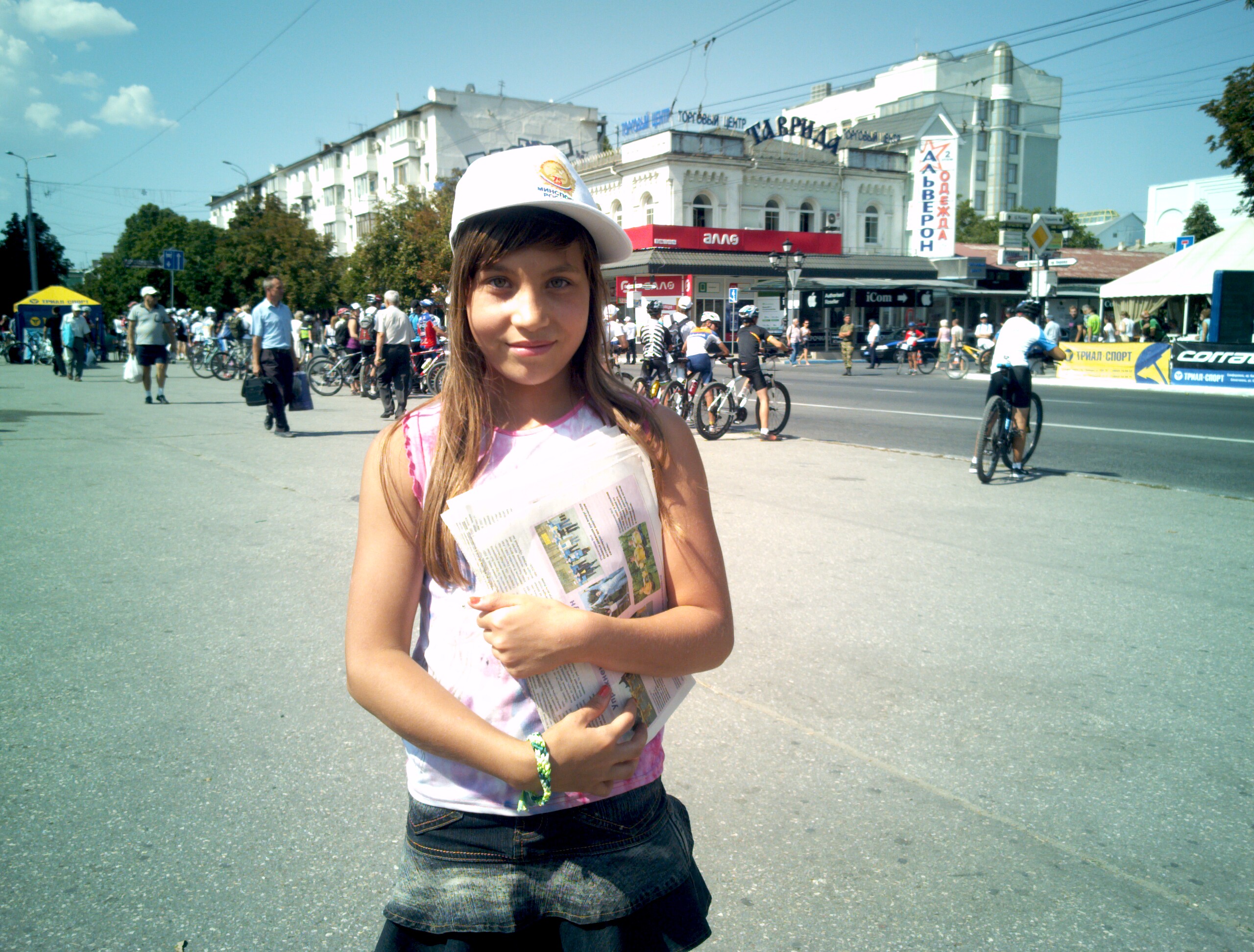 法轮功学员在发资料时,一个叫妮珂的十二岁小女孩走过来说:“我能不能也发(真相)报纸呀?”于是学员给了她一些,过了一会,小女孩发完了,又跑过来要报纸。学员说:“你为什么想帮我发报纸呀?”小女孩说:“因为觉的发那么多的报纸,你会很辛苦,所以就想帮你。”学员说:“那你的父母知道吗?他们不担心你吗?现在天气很热呀!”妮珂指指不远处停着的一辆大巴士说:“我的父母就在那儿,他们能看到我。他们同意我发报纸。”就这样,妮珂很高兴的又拿起真相报纸,学着学员介绍大法的口气,很礼貌的给行人发报纸,就这样一直坚持到活动的最后。