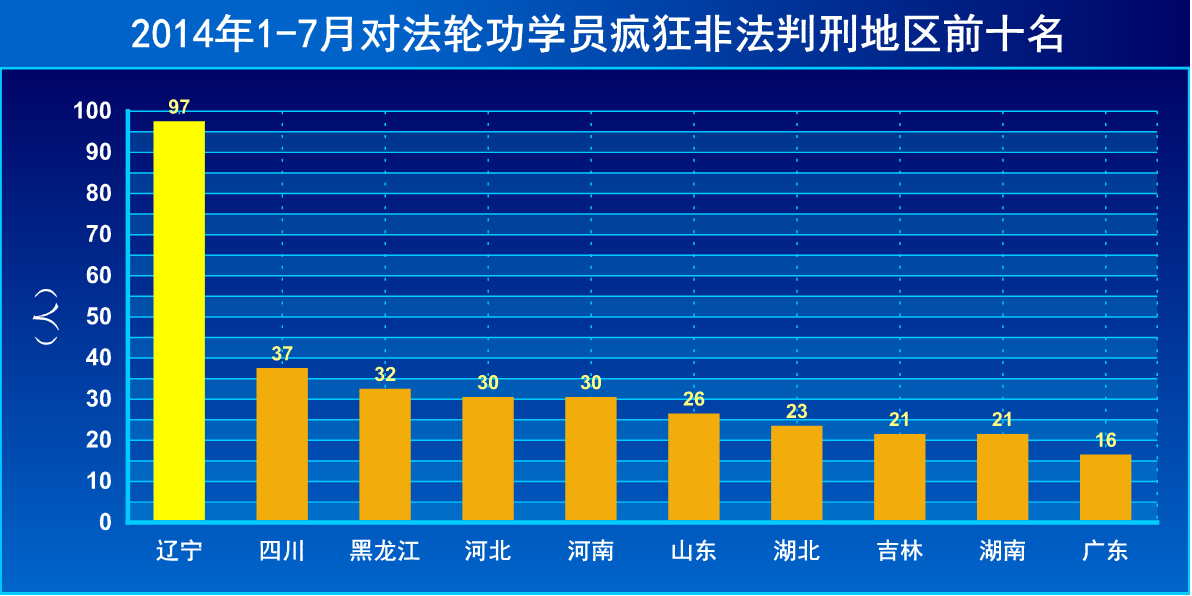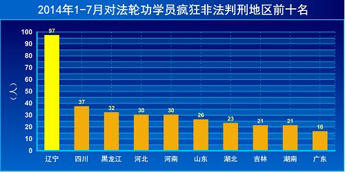 3、今年头七个月辽宁法轮功学员被非法判刑(庭审)人数遥遥位居全国第一