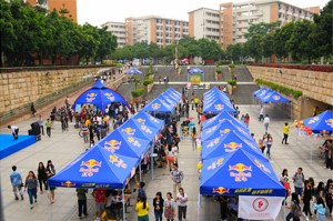 在大学城,广州外语外贸大学有一个独特的标志——连接教学区和生活区的隧道,隧道由两端的下沉式广场和地下人行通道两部分组成。在课余时间广场上经常会举行各种活动,被称作“隧道口文化”。学子们通过这个隧道往返于宿舍和课堂之间,下午五时左右,刚好是下午的下课时间,也是学生们最放松的时刻,这里人来人往,热闹非凡。