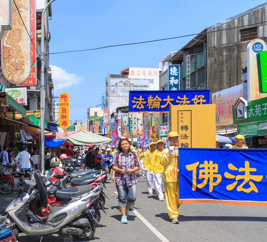 ![]() 法轮大法弘法队伍走过台南市主要的闹区和乡镇,吸引许多市民和乡亲走出来路旁,翘首迎接。 |