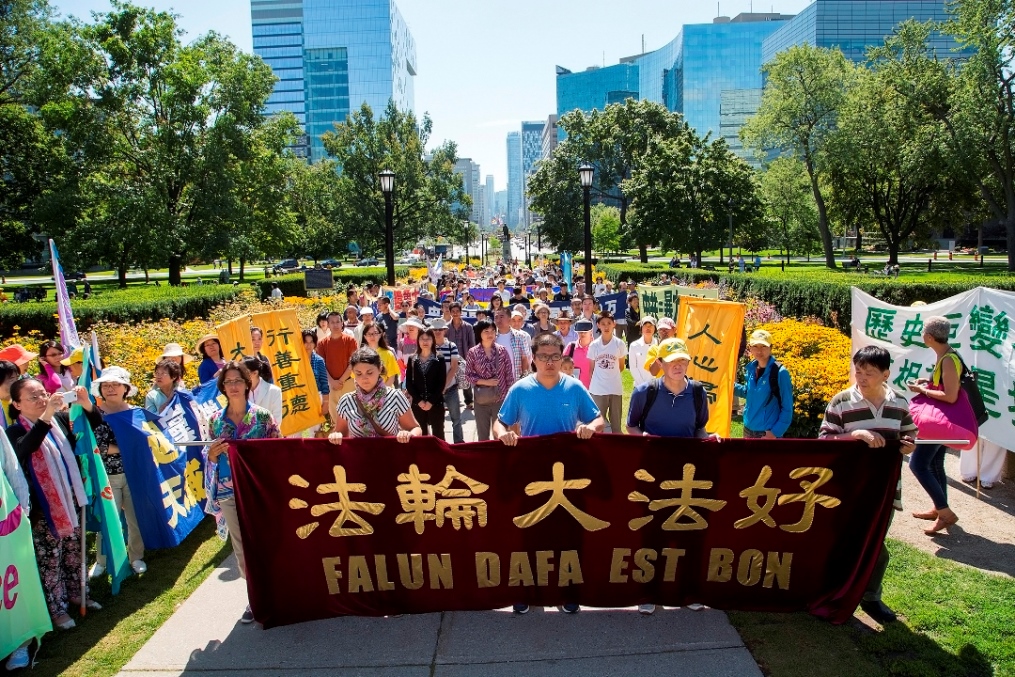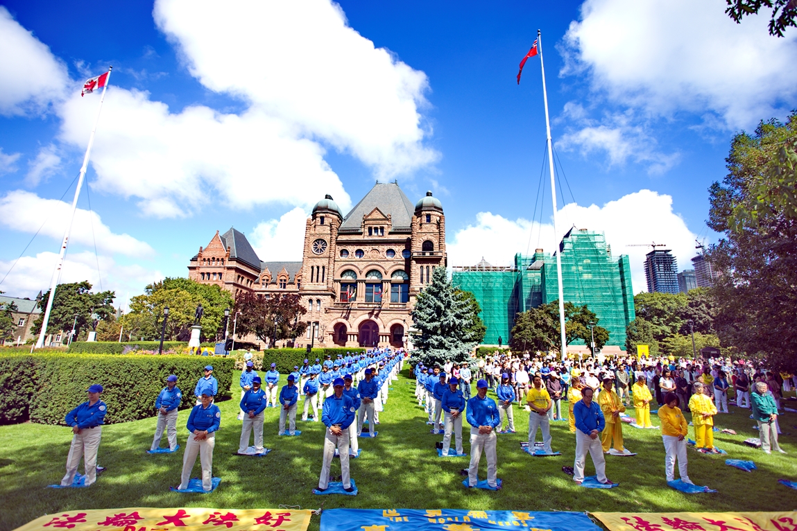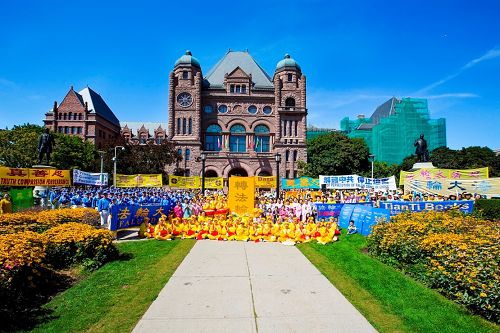 ![]() 图:1-2:八月二十四日,一千多名法轮功学员和支持者在多伦多的省政府广场前举行了集体炼功、大型集会和游行,庆祝法轮大法传世二十二年,揭露中共对法轮功的迫害。 |