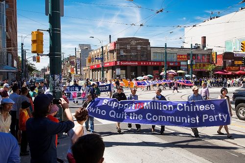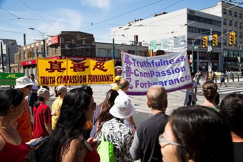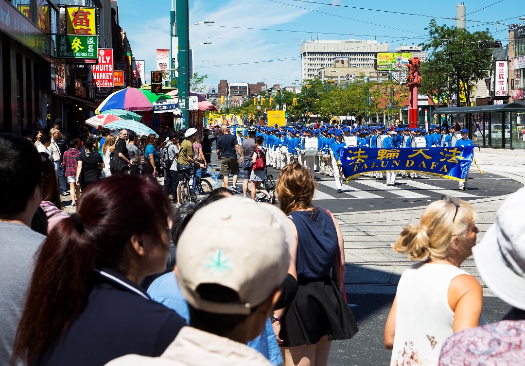 董女士给他介绍说:“法轮功在海外弘传100多个国家了,这只是多伦多的其中一次游行。”张先生说:“真太震撼了,没想到在国外这么自由。”当听完董女士给他讲法轮功的迫害真相后,他马上同意退了团。