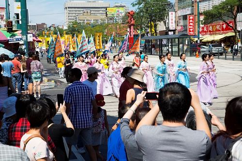 来自北京的张先生,是刚到多伦多的留学生,今天第一次到街上溜达,就遇见了法轮功游行队伍。他说:“这是我第一次看到法轮功的游行队伍,真的太壮观了。但在国内是根本就不敢说这三个字的。”