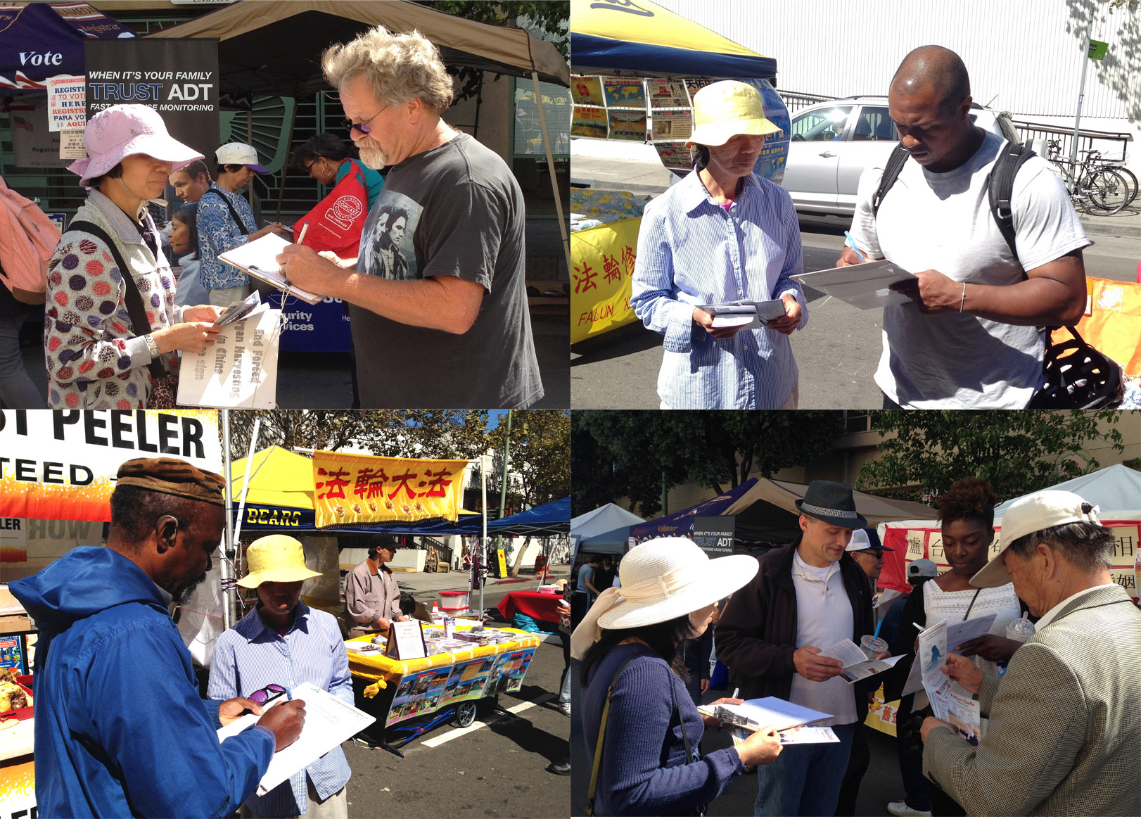 法轮功学员发现,以往征签时,大多数是西方人签名,很多华人反映冷淡或回避。但是,这两天,不少华人在“反对中共强摘法轮功学员器官”的征签板上签名。