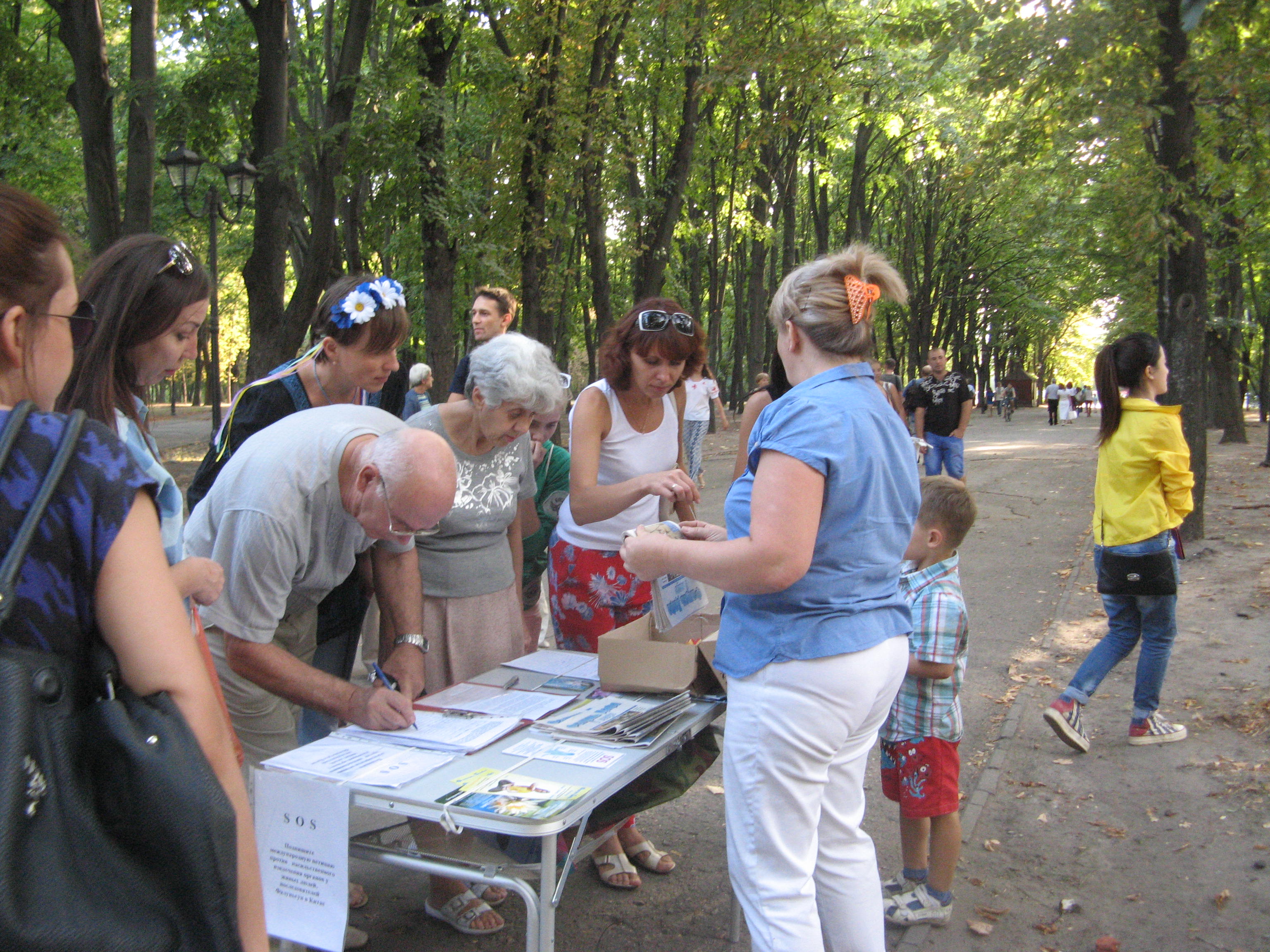 ![]() 哈尔科夫市民族集市上,市民签名反对活摘 |