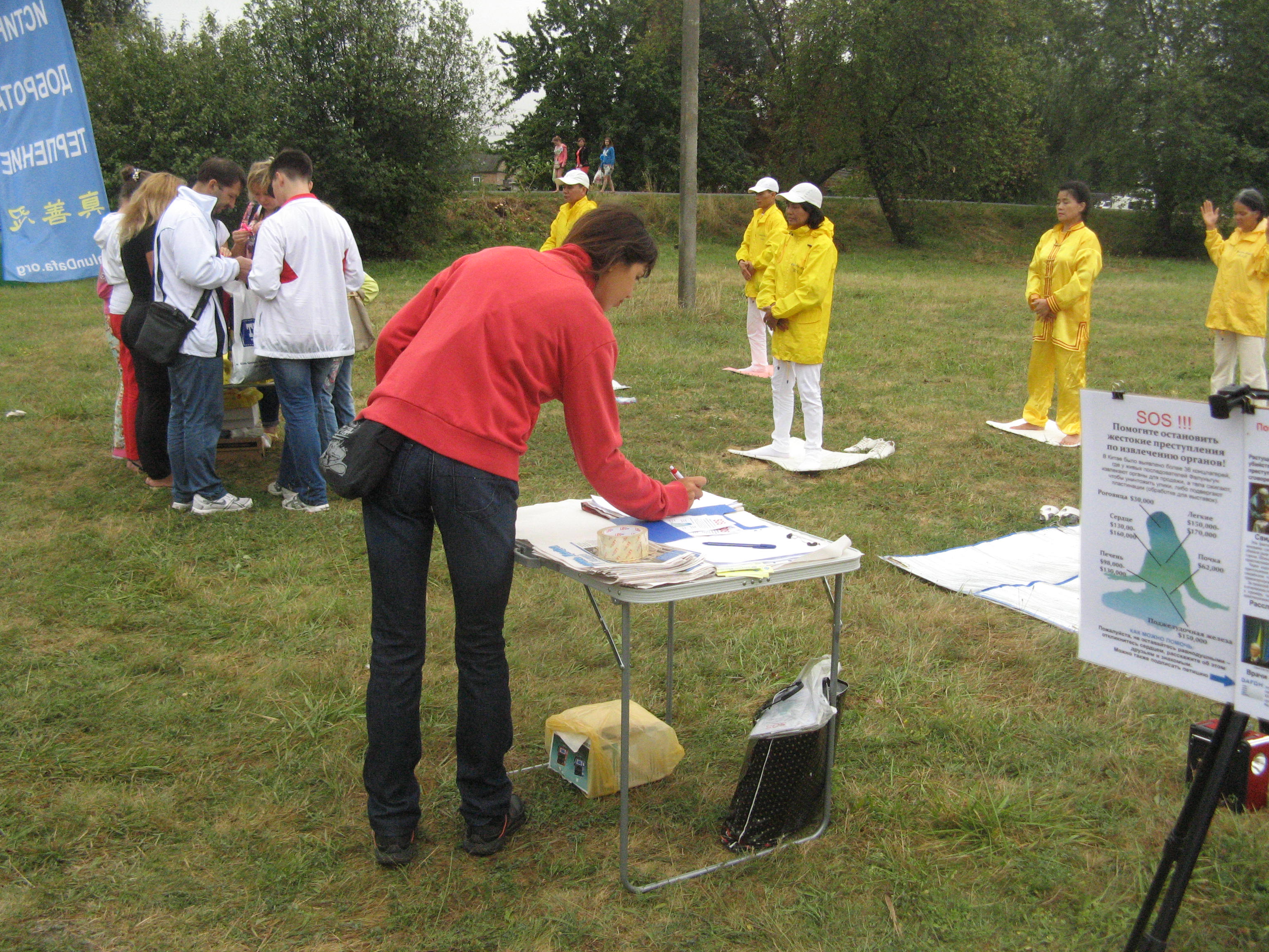 八月二十三日至二十四日,乌克兰旧首都哈尔科夫市鉴于当前不稳定的政局,市政厅取消了市中心的所有庆祝活动,因此大量市民只有到谢弗琴科公园庆祝节日,巧遇法轮功学员举行弘法活动。学员们表演的舞蹈和腰鼓引来很多市民的驻足观看。明白真相的市民纷纷自愿签名,谴责中共活摘暴行。