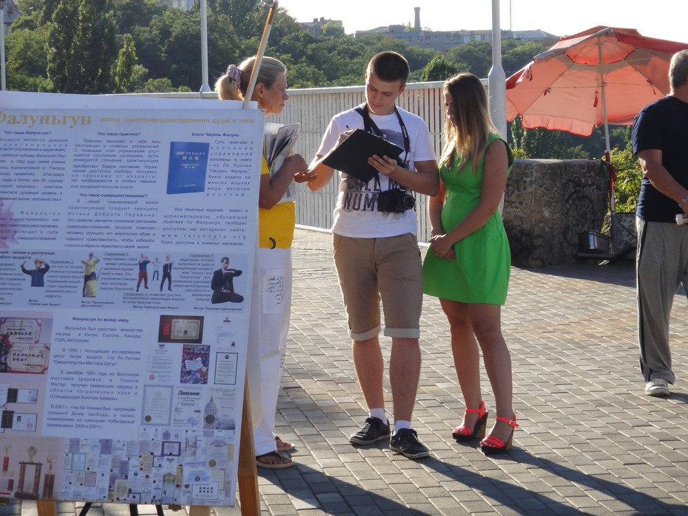 南方海滨港口贸易城奥德萨的法轮功学员,在独立日庆祝期间,向游客和市民传播大法的美好,同时揭露中共活摘罪行,广泛征集签名。