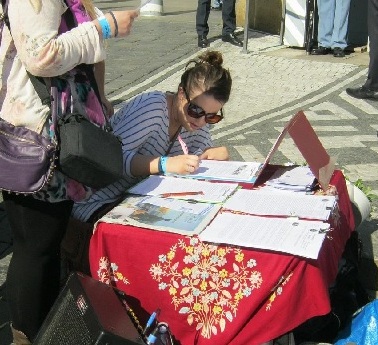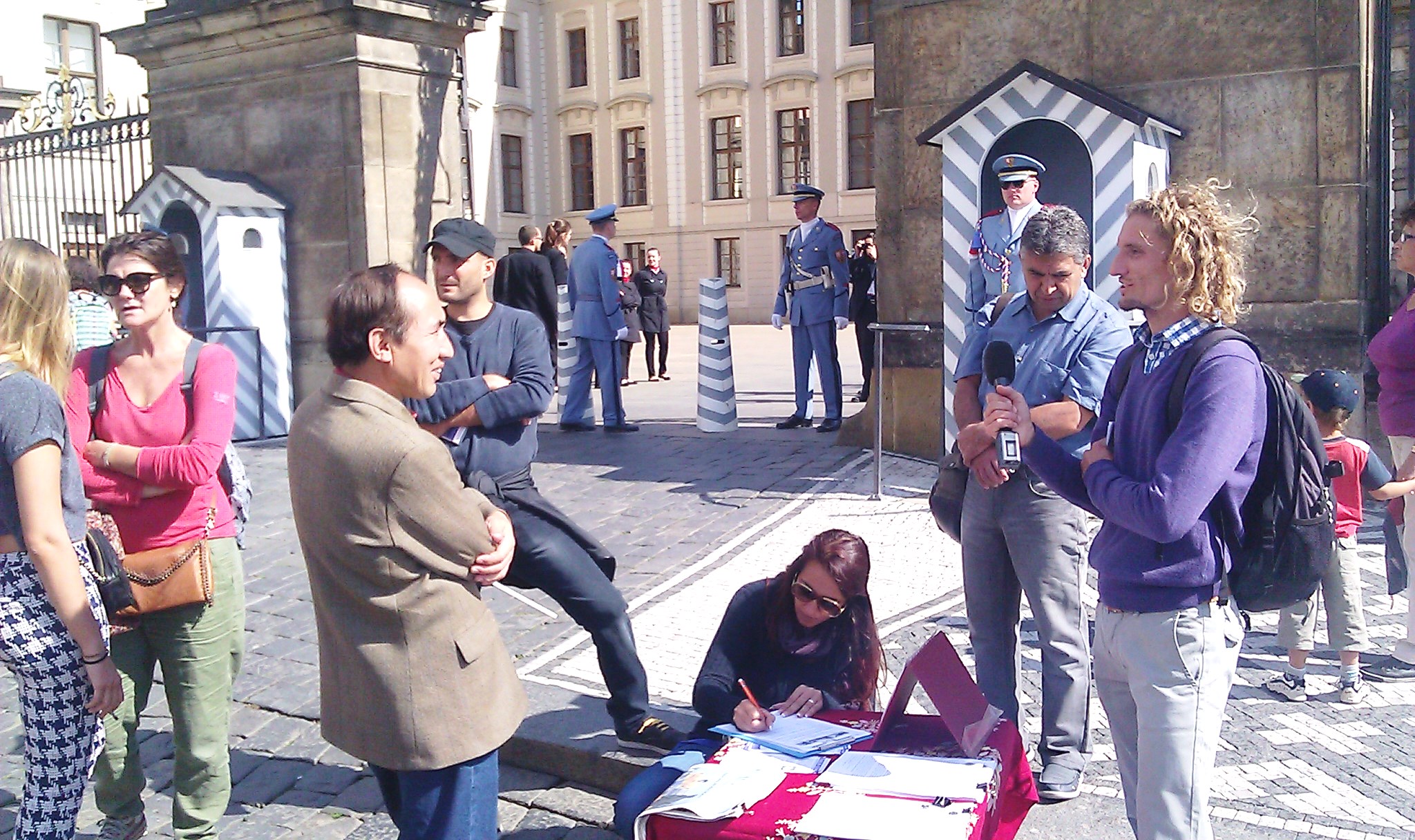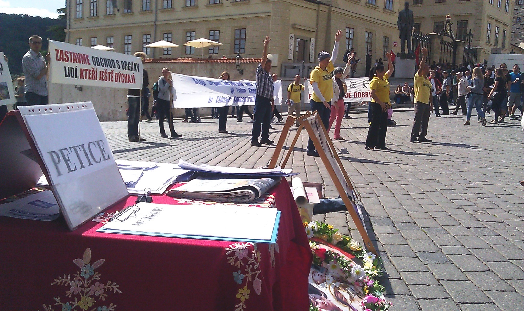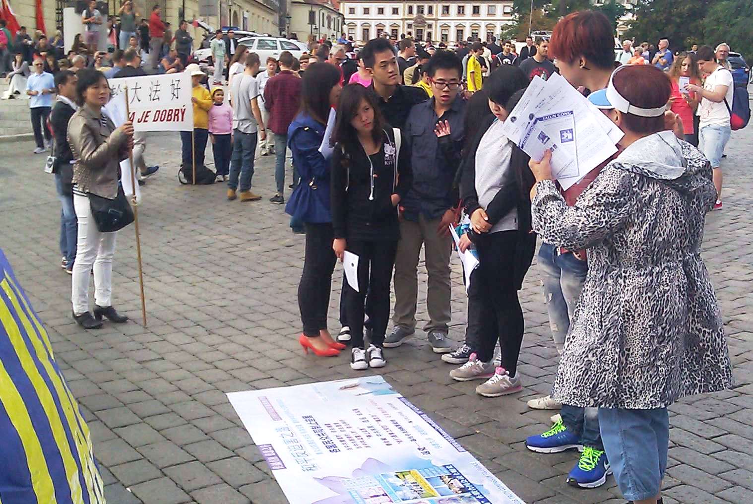 捷克法轮功学员在论坛和会议举行地发放真相传单、播放真相录音并宣读“追.查!国际”组织《追查中共中央政治局常委张高丽参与迫害法轮功的通告》。各个国家的游客和当地人来了解真相,并且在呼吁捷克政府要求中共停止迫害法轮功和制止中共非法摘取器官的请愿书上签名。