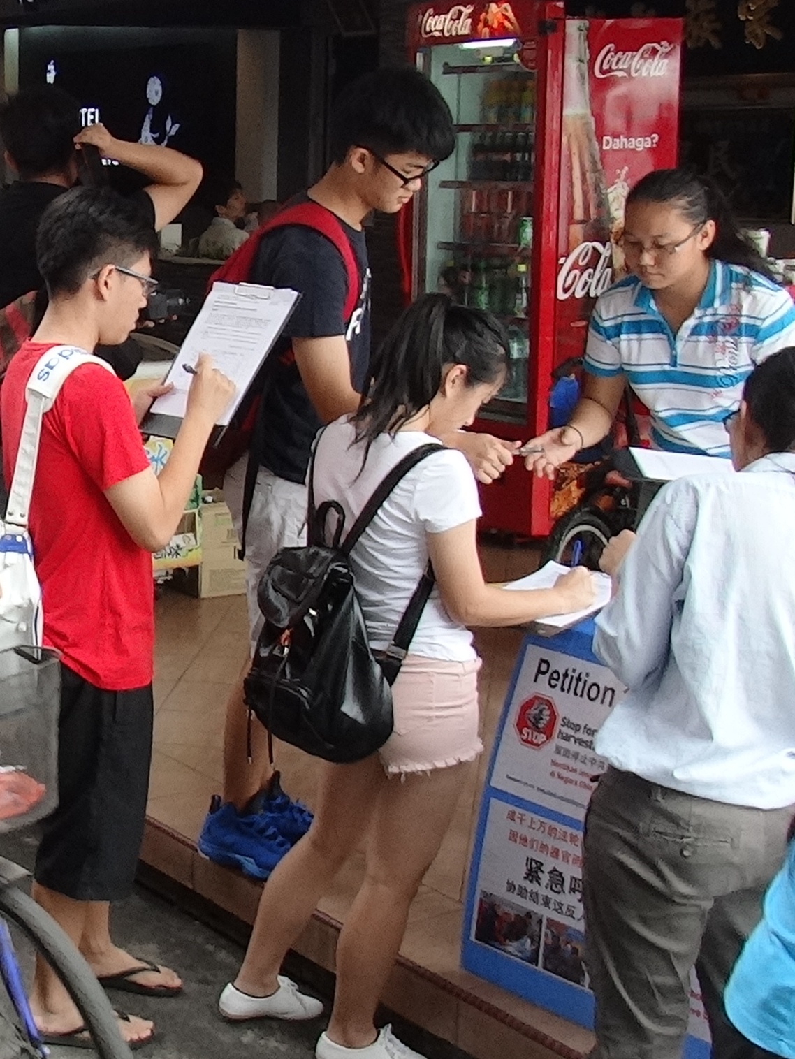 ![]() 了解真相的人纷纷停下脚步,签名谴责中共活摘法轮功学员器官暴行。 |