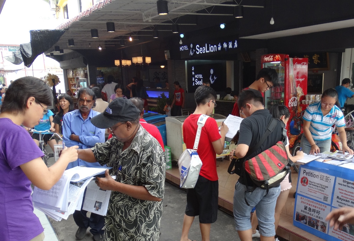 一名来自吉隆坡,从事市场销售的罗先生,在村口看着征签展板很久。罗先生向法轮功学员聊起时表示,之前都知道有许多人为了急着要移植器官,都到中国去。很多人都以为这些器官如中共所说,来源于从死刑犯,但却不知道原来这些器官的真正来源。当法轮功向他讲明真相后,他感到十分震惊这些器官的来源,都是中共非法关押大批法轮功学员,作为庞大的器官库,活摘法轮功学员器官所得来的。罗先生明白真相后马上在征签表格上签名。他表示,得知法轮功被迫害的真相后也解开了他之前的疑惑,因为他也一直在怀疑,没有理由中国那边有那么多的死刑犯可以提供那么多的器官。