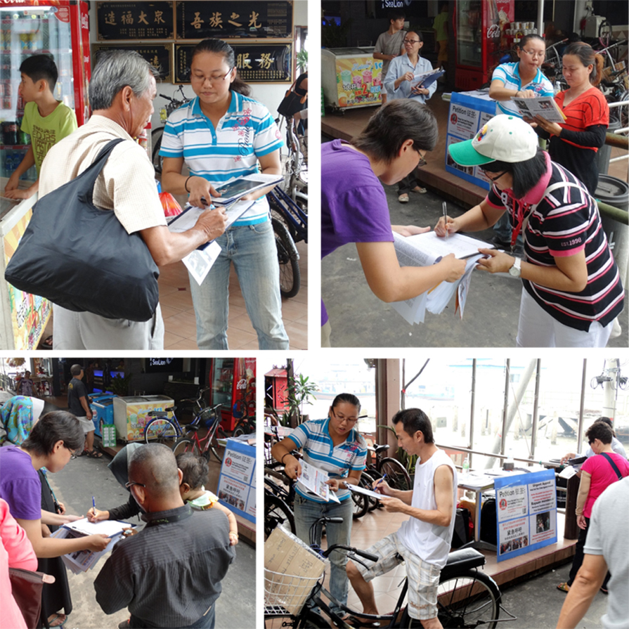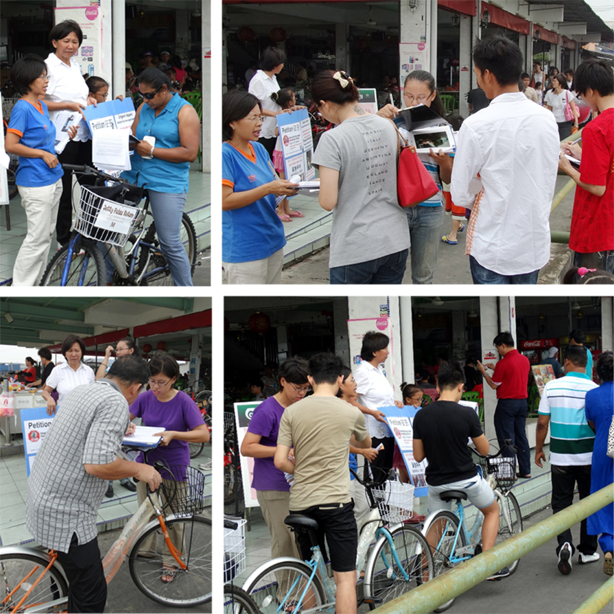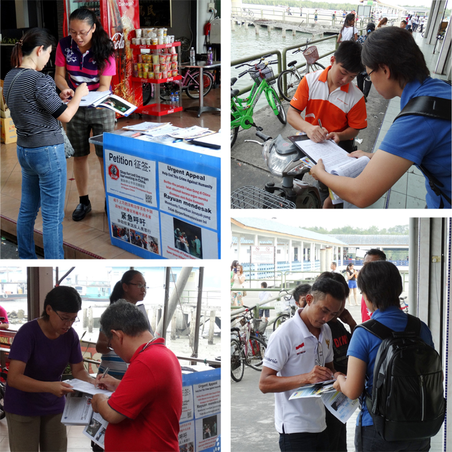 一名华裔妇女当了解真相后,感到中共十分残忍,不但马上签下名字,还叫她的孩子们都一起签名支持反迫害。一群来自马来西亚半岛北部亚罗士打(Alor Star)的游客,得知真相后都签名支持法轮功反迫害,并表示,中共乱来,什么都敢做。