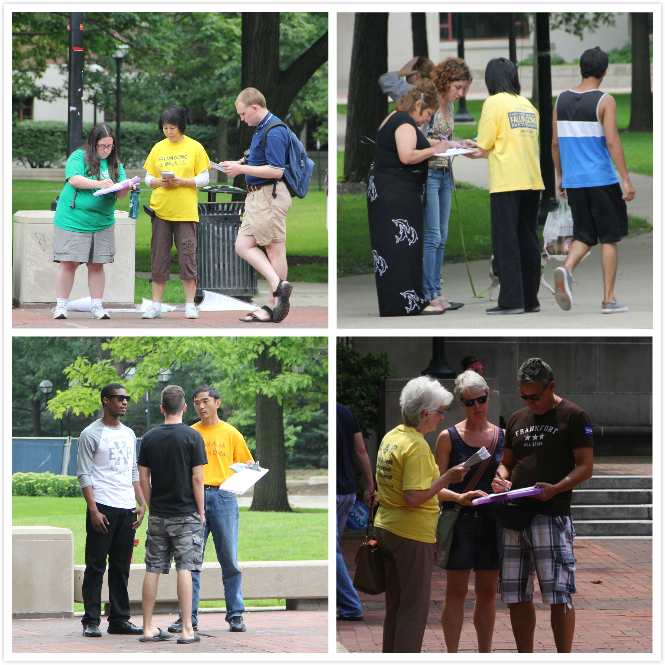 ![]() 法轮功学员在安娜堡校园内征集反迫害签名 |