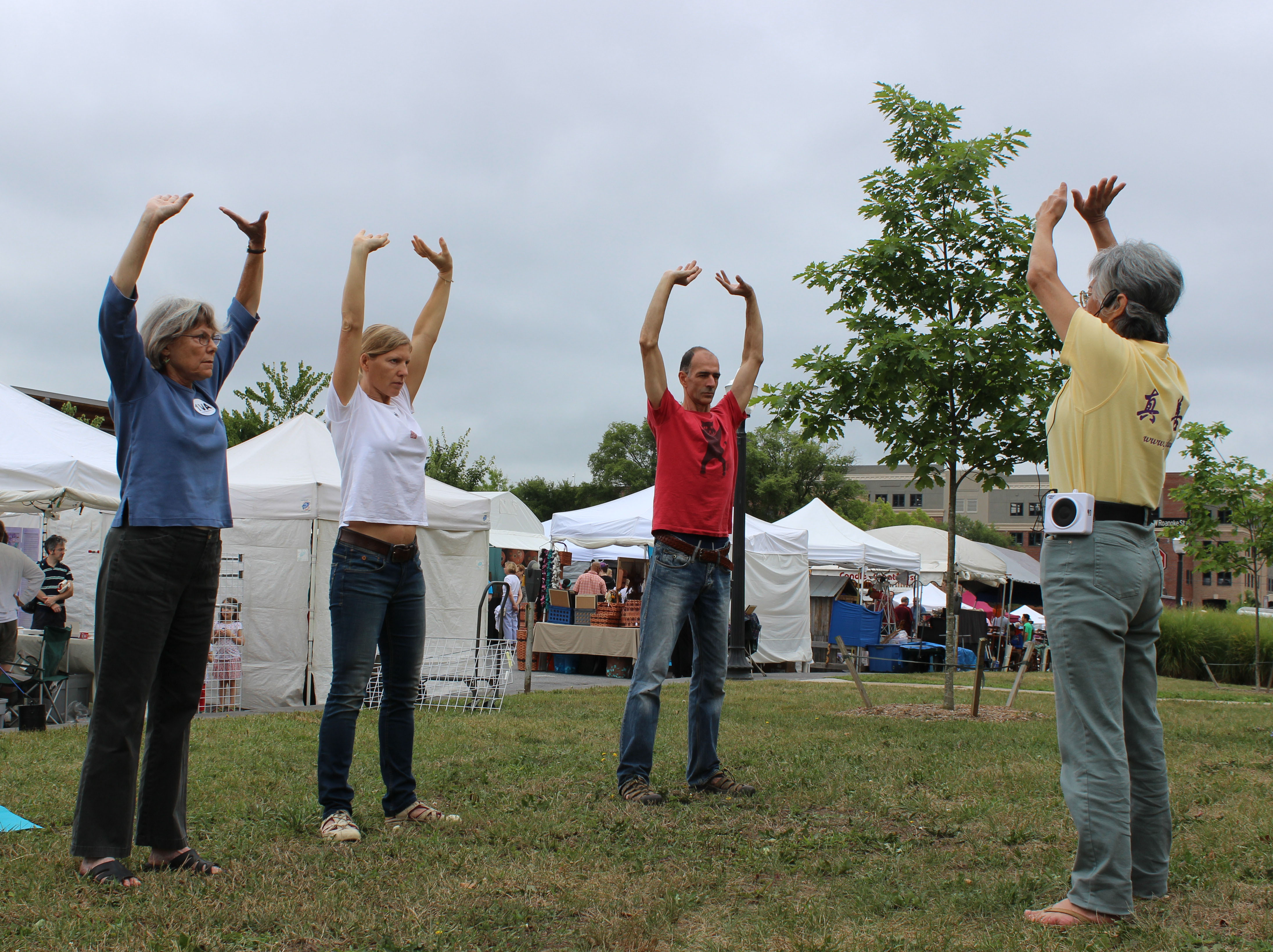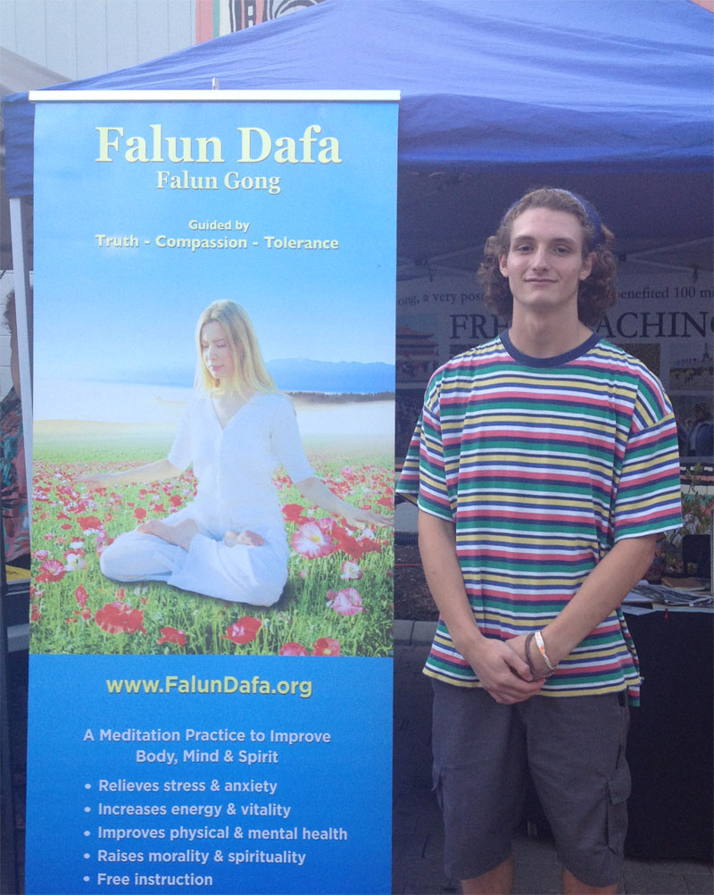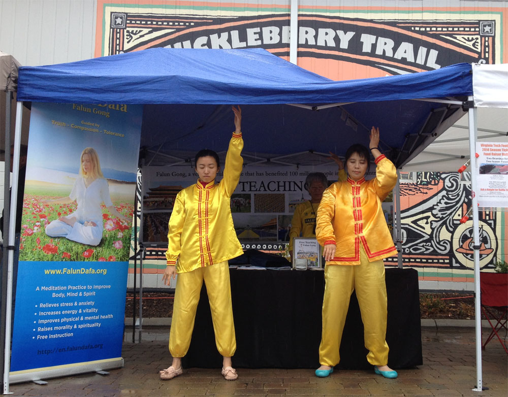 思比•布朗(Sebi Brown)是维吉尼亚理工学院的一名大四学生。他看了法轮功第五套功法演示之后,立刻找法轮功学员学了起来,一口气学了两个多小时,把五套功法全都学了一遍。他说:“虽然我还不会双盘,但是打坐的感觉好极了,好象被强大的能量包围着。如果每个人都来试一试就好了。”活动结束后,思比带走厚厚一叠介绍法轮功的资料。他说,“我拿去给同学们看一看,他们一定会喜欢。”