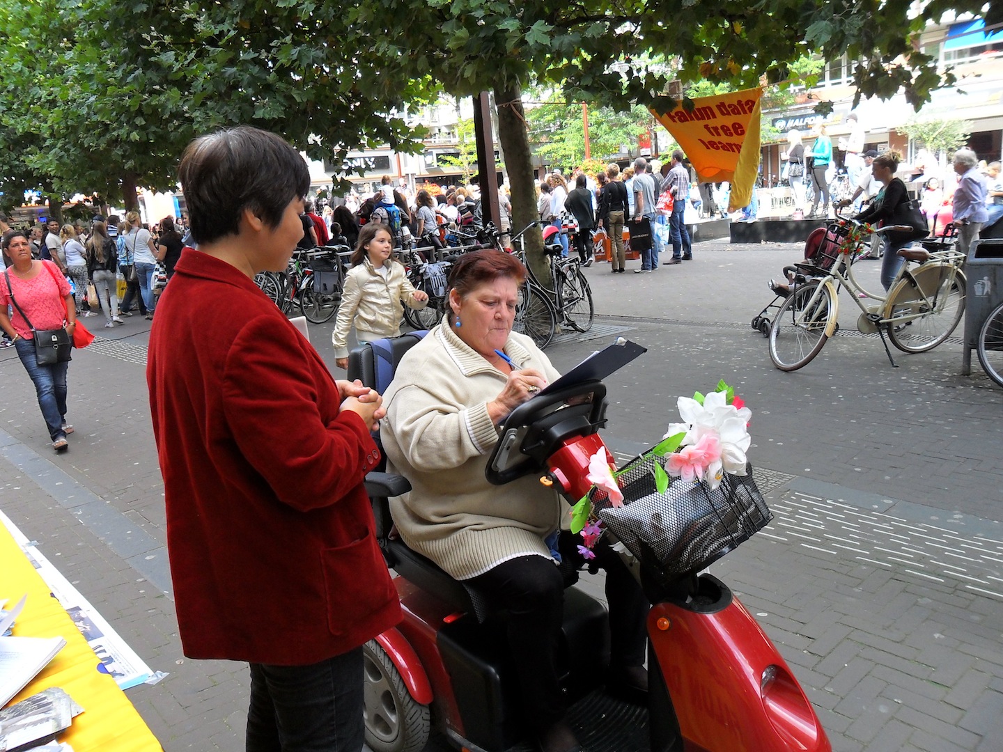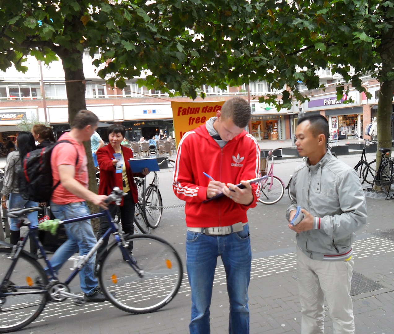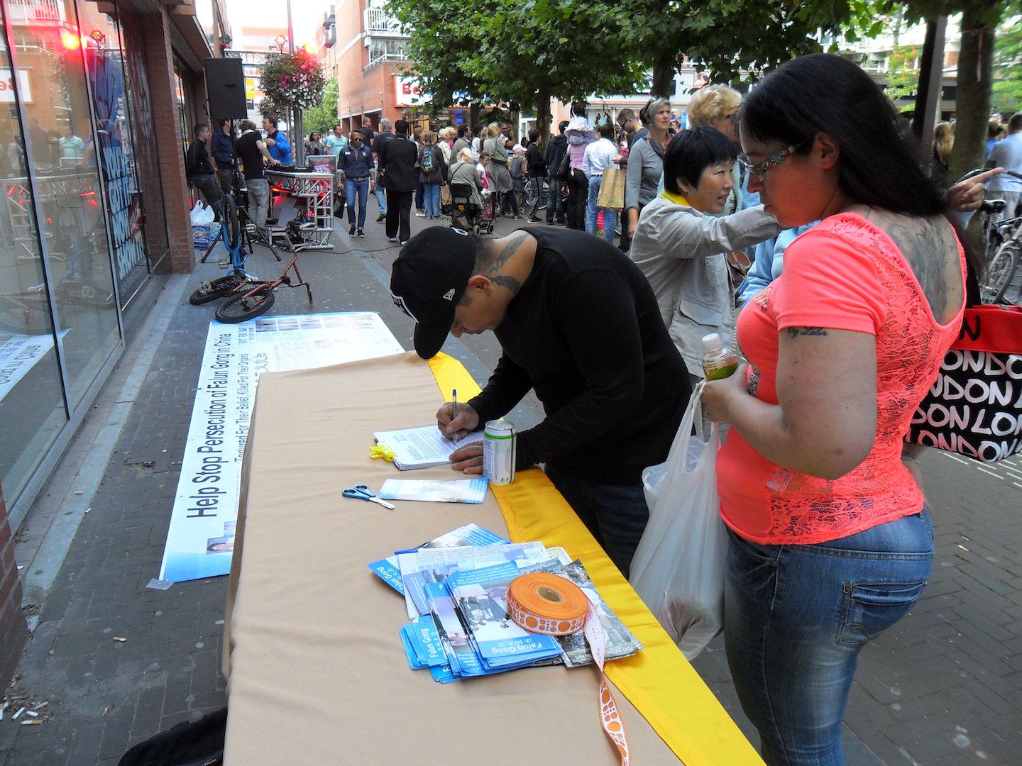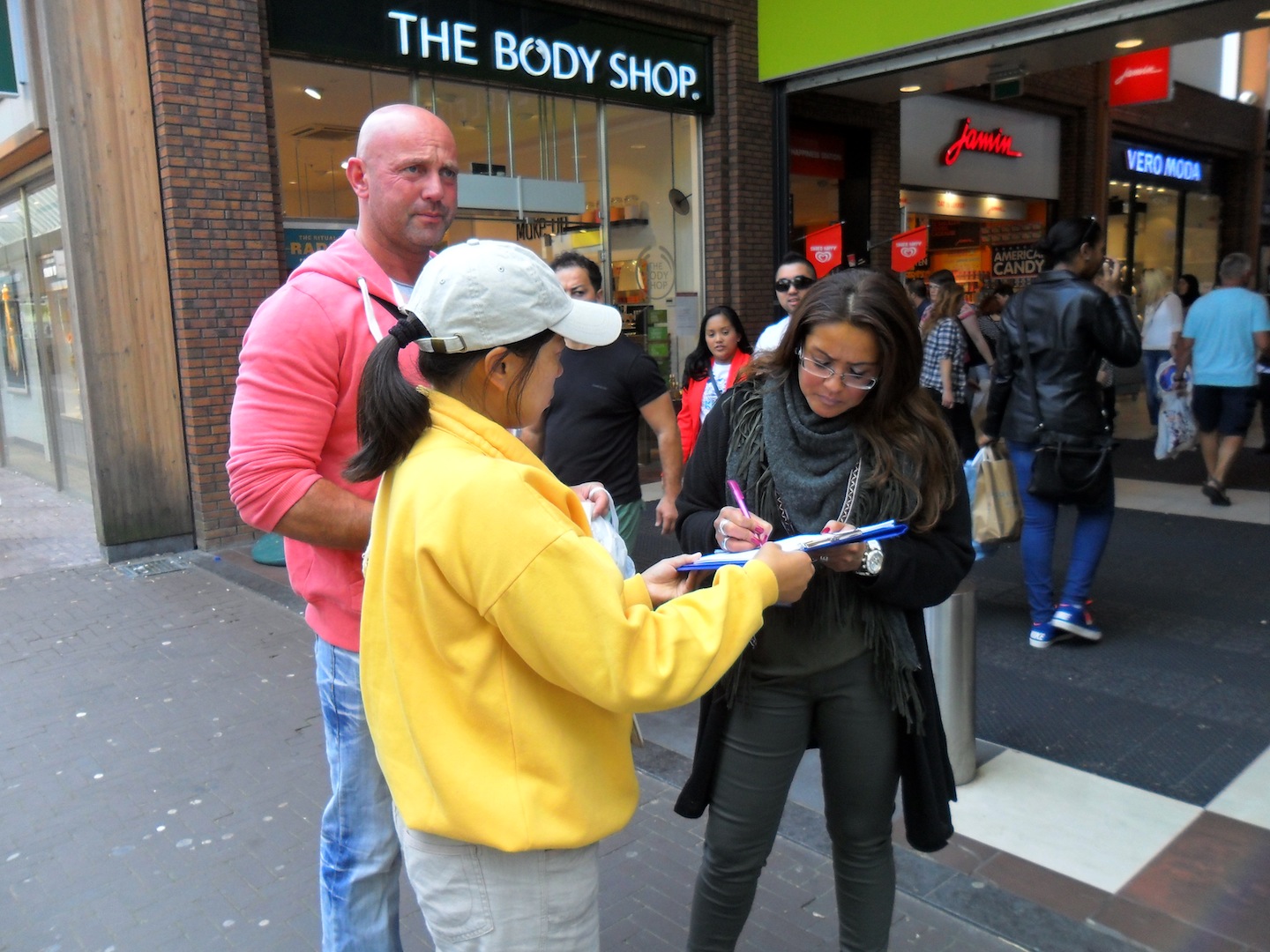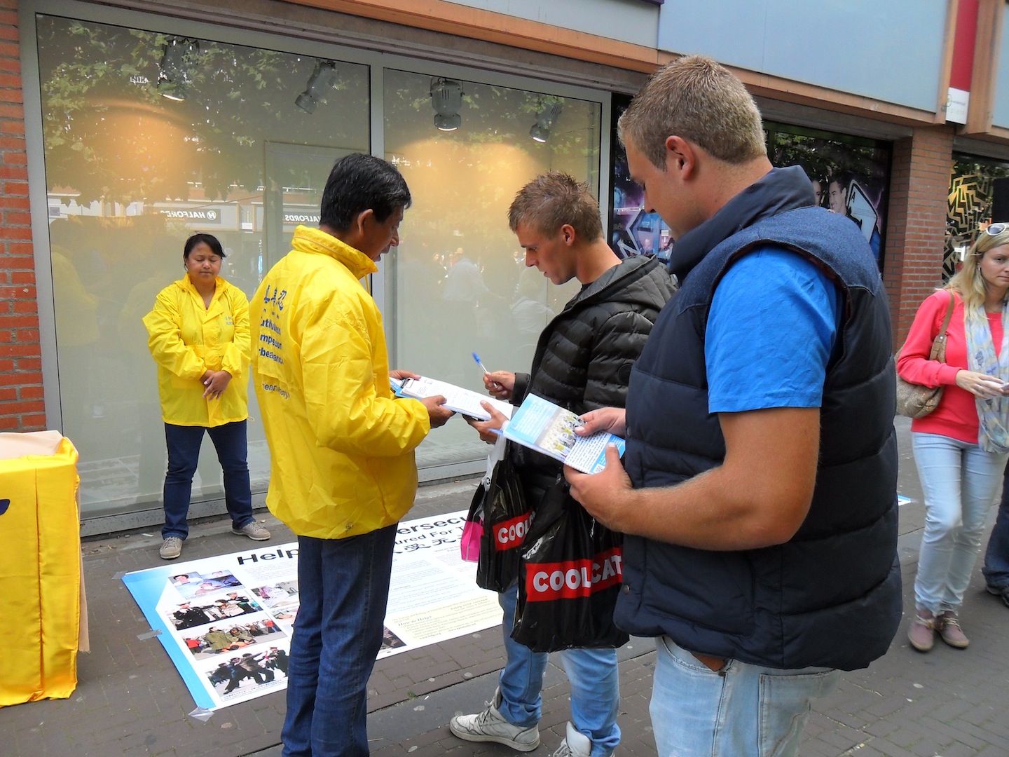 【明慧网二零一四年九月十五日】二零一四年九月十三日,部分荷兰法轮功学员来到北荷兰省的霍夫多普小城征签,向那里的居民和游客介绍了发生在中国的,对信仰“真善忍”的法轮功学员的残酷