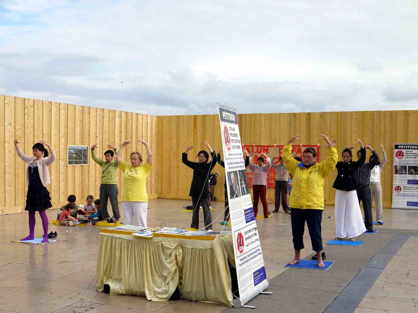 很多中国大陆的游客看到法轮功,显得很兴奋,纷纷拿出相机拍照,还索要中文版的《真相报》和《·九·评*共产党》。一名游客拿了真相报后,学员要给他《·九·评*共产党》,他说早看过了,去台湾的时候就得到了。