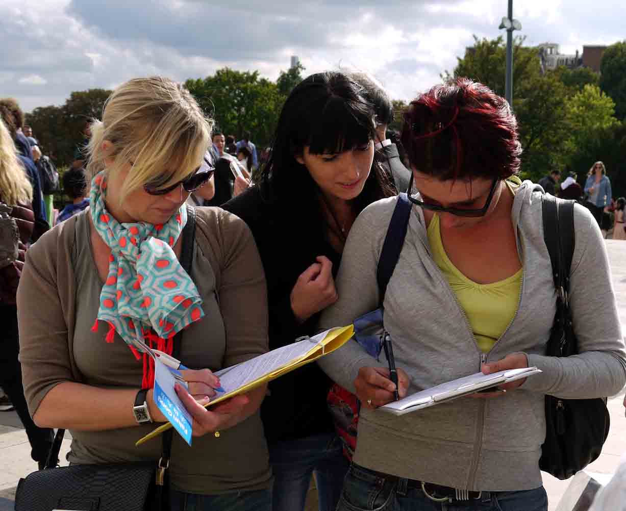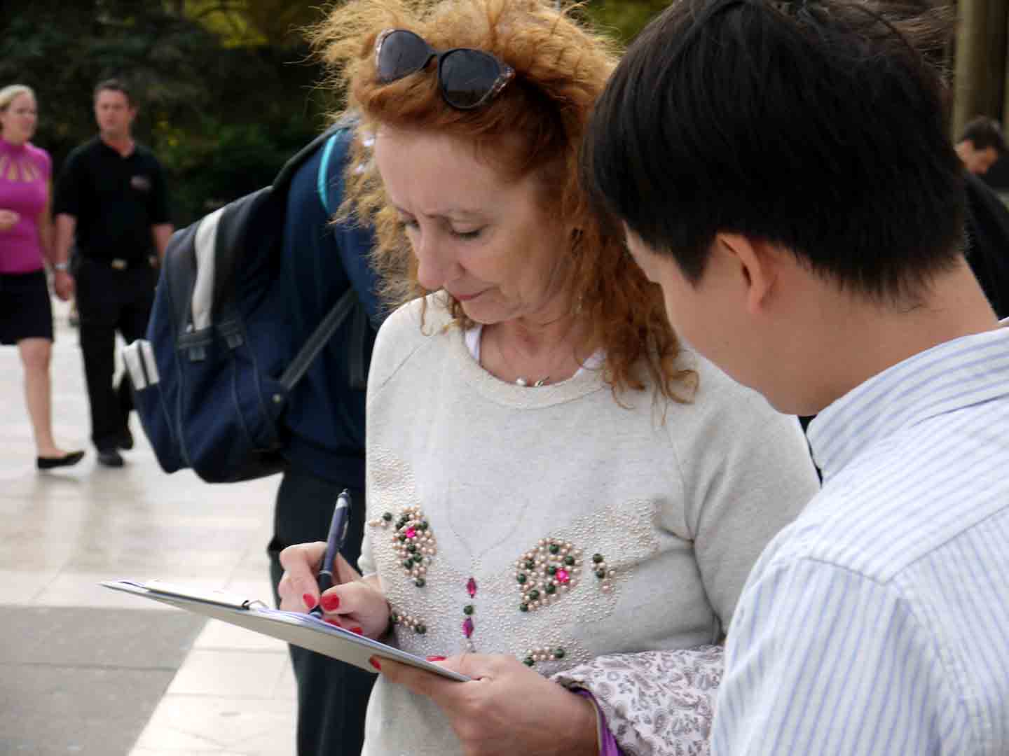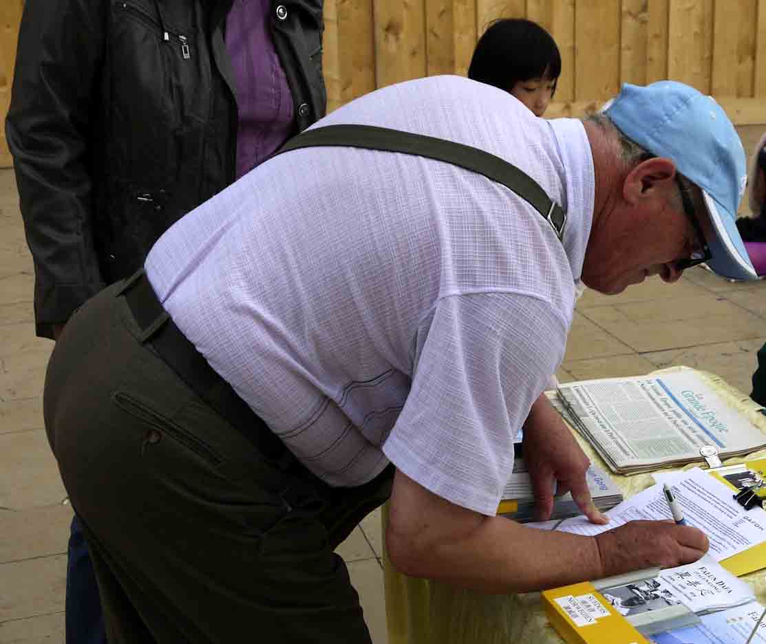 了解了活摘器官真相的民众,都在征签表上签了名。他们中有年轻的学生、年长的退休人员,带着孩子的夫妻,及社会各阶层人士,他们向法轮功学员表示感谢,并鼓励法轮功学员:“做得好,坚持下去!”