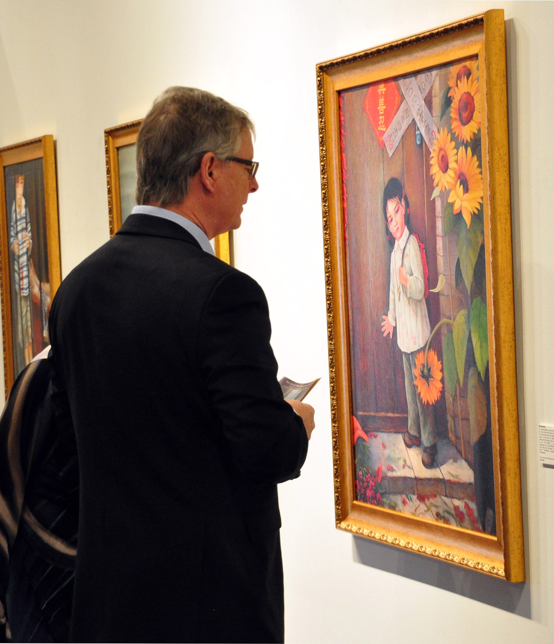 ![]() Cobourg副市长John Henderson正在欣赏画展,他表示自己被画中的人物感动 |