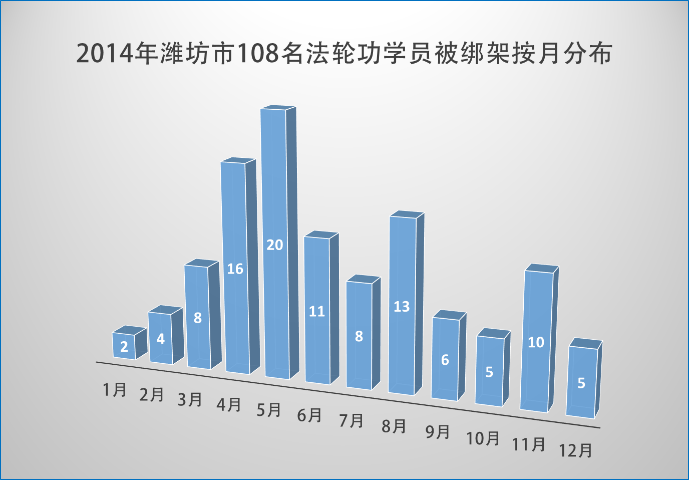 2014年6月3日,潍坊市寒亭区石秀琴被绑架。6月7日,寿光市韩新英、赵美秀、李卫东在田柳镇集市被绑架。6月11日,昌乐县张巨武和他的妻子(常人)在食堂上班被昌乐县乔官镇派出所恶警绑架;6月25日,潍坊峡山区张尊兰被绑架。6月26日,潍坊市王若霞、刘淑贤、韩桂莲、庞宗俭在王若霞家被绑架。
