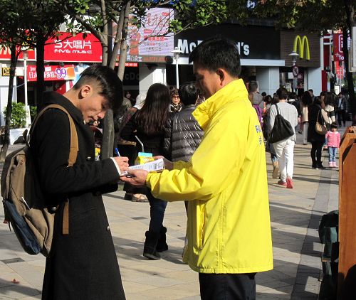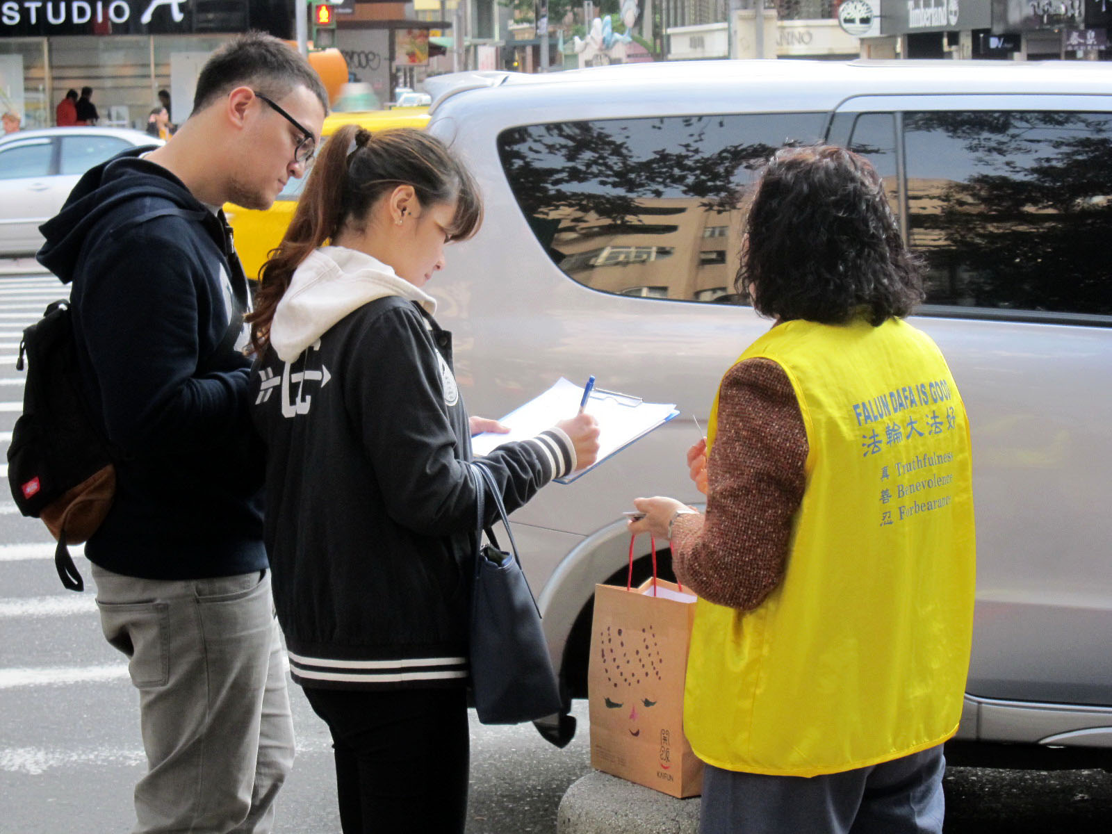 来自加拿大的华侨表示,活摘器官,在落后国家才会发生的事,我支持你们,揭露邪恶。一名台北市民表示,我帮你们签名,我听说过,这种事本来就应该支持。