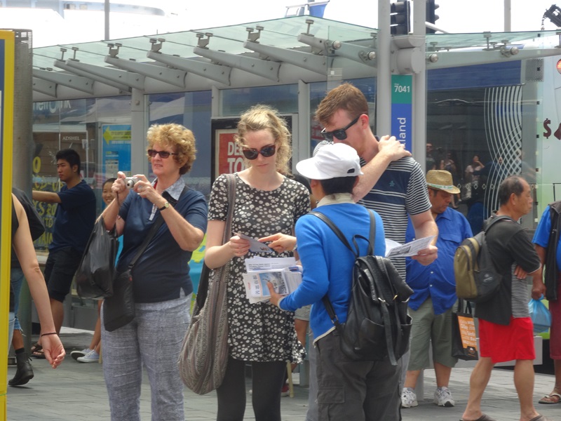 华人游客苗女士第一次听到“三:退.”的消息,她也与法轮功学员黄女士交谈得很高兴。她说自己已在澳洲定居二十多年了,这是第二次来新西兰旅游。她说听到过法轮功的消息。黄女士告诉了她“三:退.”的意义,苗女士很爽快地以“苗美丽”的化名退出了共青团和少先队。