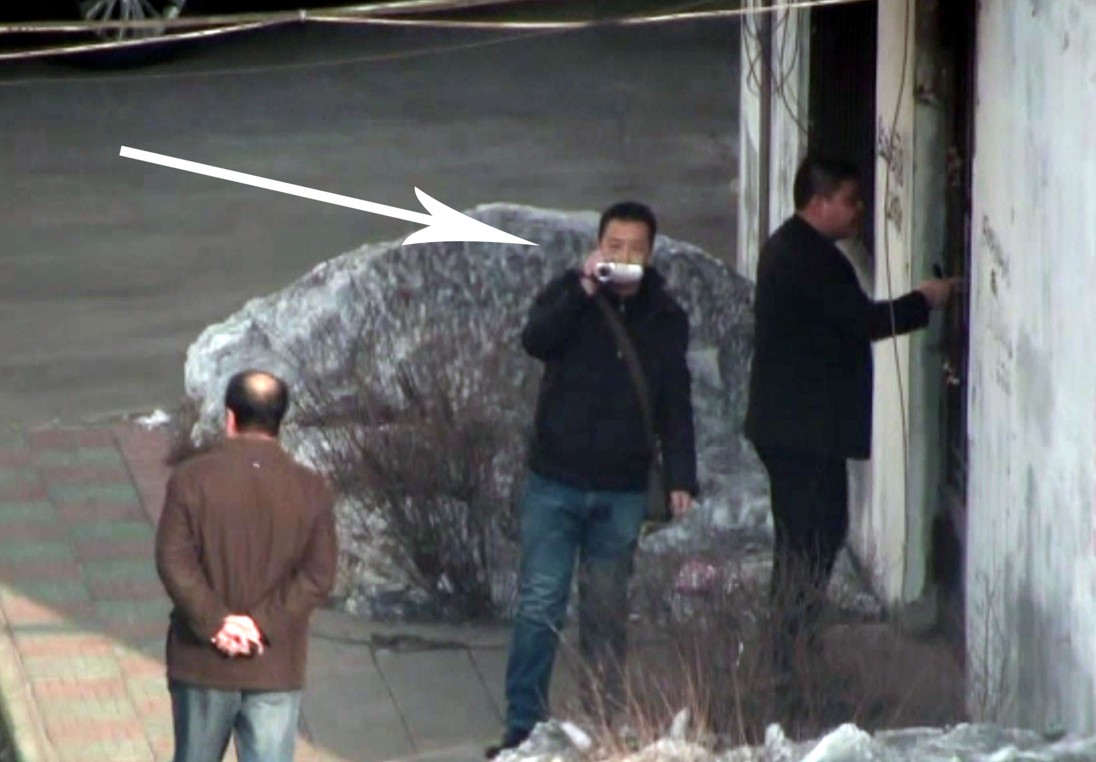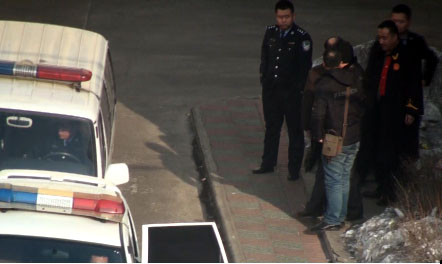 ![]() 参与非法庭审的部分警车。 | ![]() 红领带者,法官高志新。 | ![]() 背斜挎包为给孙淑杰亲友录像者 |