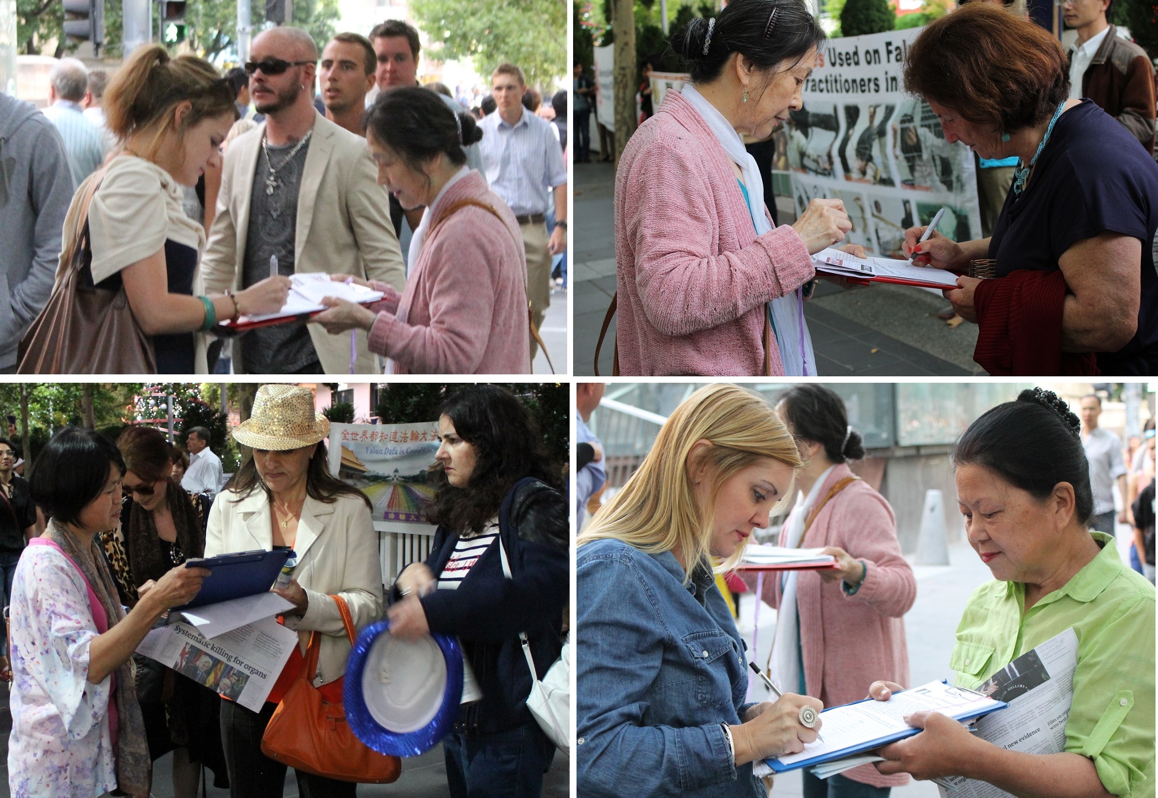 来自维省第二大城市——吉朗市的心理医生马修(Gerald Mathews)博士在签名后告诉记者:“我在澳洲行医二十五年了,十年前开始听说法轮功,知道法轮功在中国遭受迫害,因为我的同事加入了‘医生反对强摘器官’(DAFOH)国际组织,所以也了解到有关活摘器官的消息。”