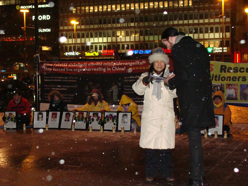 ![]() 赫尔辛基法轮功学员在市中心举行烛光守夜,悼念被中共迫害致死的大陆同修 |
