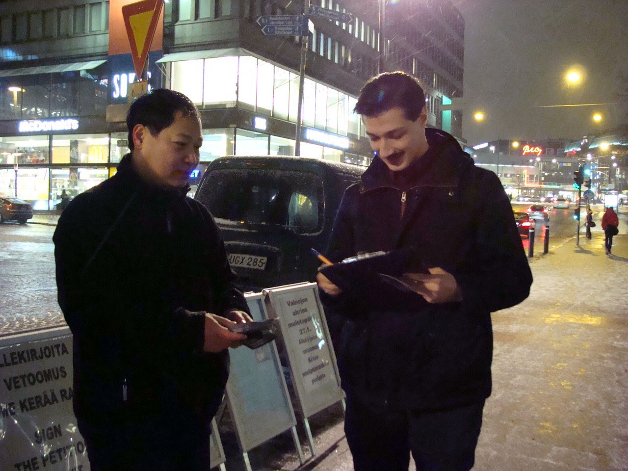 很多签过名的人都由衷地希望这样残酷的迫害尽快停止。还有人建议芬兰的国会议员们也出来帮助法轮功学员制止迫害。