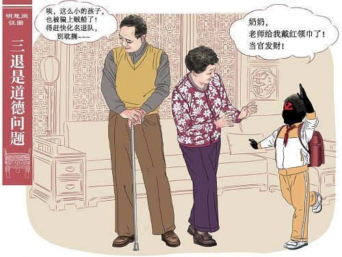 “奶奶,老师给我戴红领巾了!当官发财!”“唉,这么小的孩子,也被骗上贼船了!得赶快化名退*队-,别耽搁……”