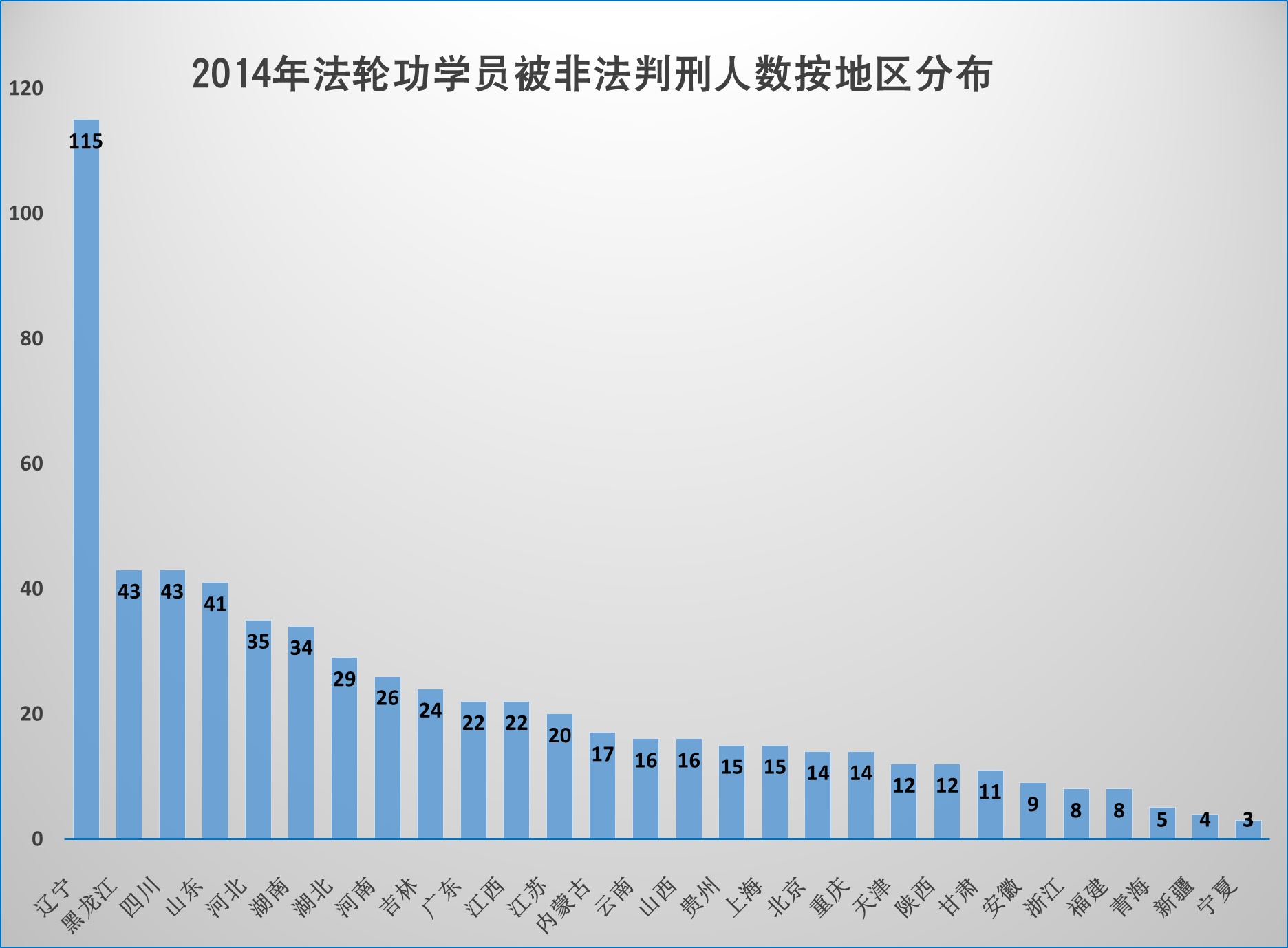 根据明慧网报道所作的不完全统计:二零一四年法轮功学员被非法判刑人员遍及二十八个省、直辖市、自治区。刑期最长的十三年,年龄最高者八十三岁。